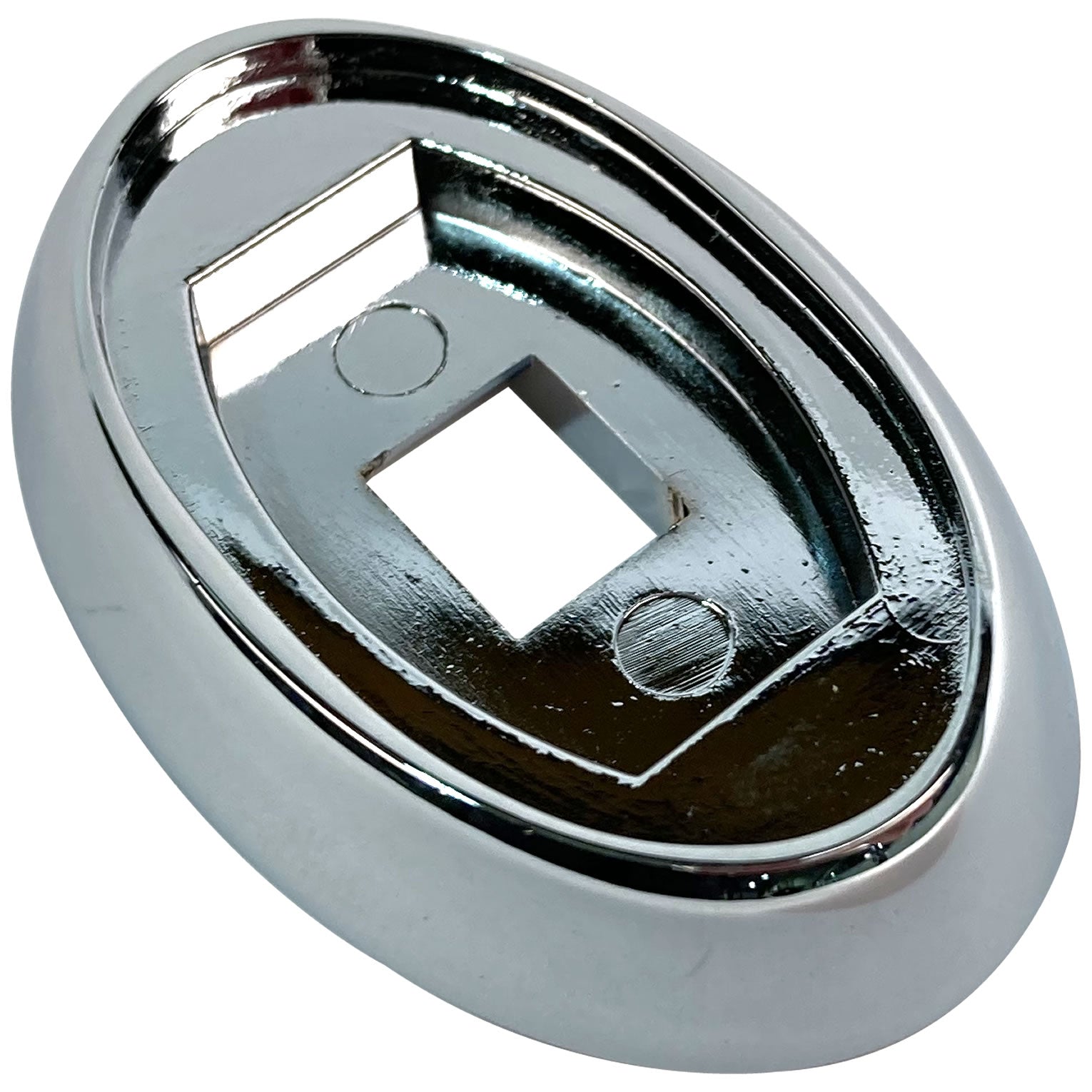 Silver Sport Transmissions Mopar pistol grip bezel. Upper bezel for all 1970-74 pistol grip shifters. This is the chrome bezel that holds the shift pattern lens. Nice reproduction.