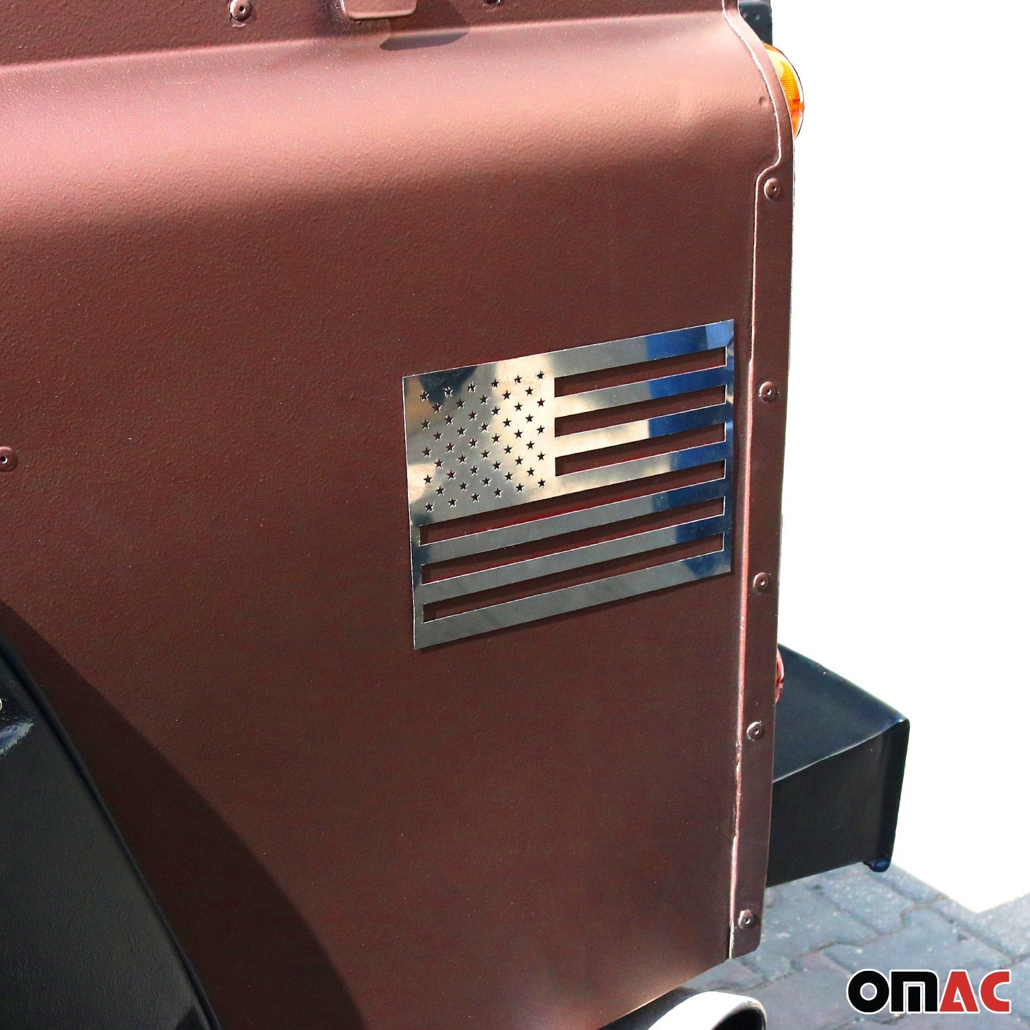 US American Flag Emblem 3D S.Steel US Badge Gloss Silver Universal Set 4 Pieces