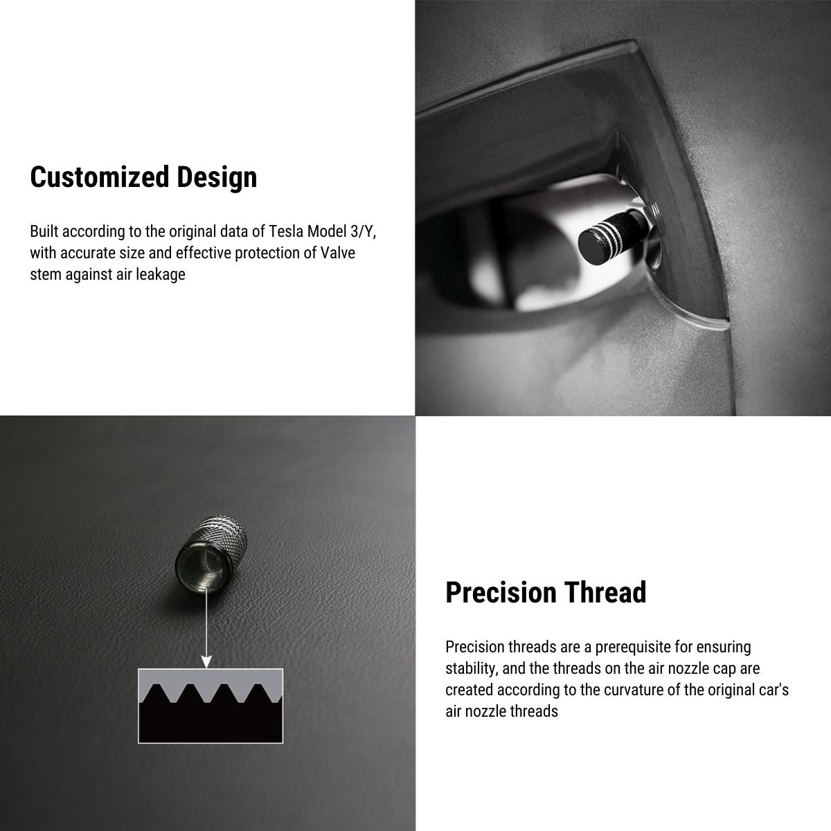 - 【Easy to install】Only screws onto the Tesla valve stem caps.