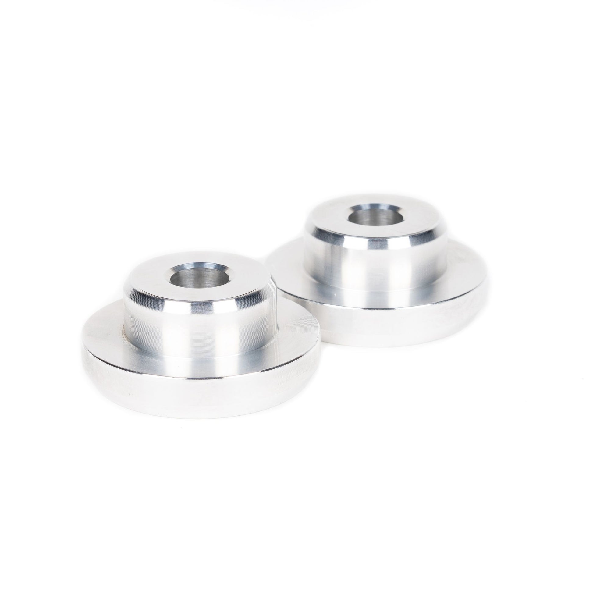 Voodoo13 Solid Billet Differential Bushings replace OEM rubber differential bushings, which commonly wear out over time. The Voodoo13 Solid Differential Bushings greatly reduce wheel hop, significantly improves power transfer through the drivetrain, and provides stability during hard launching and drifting.