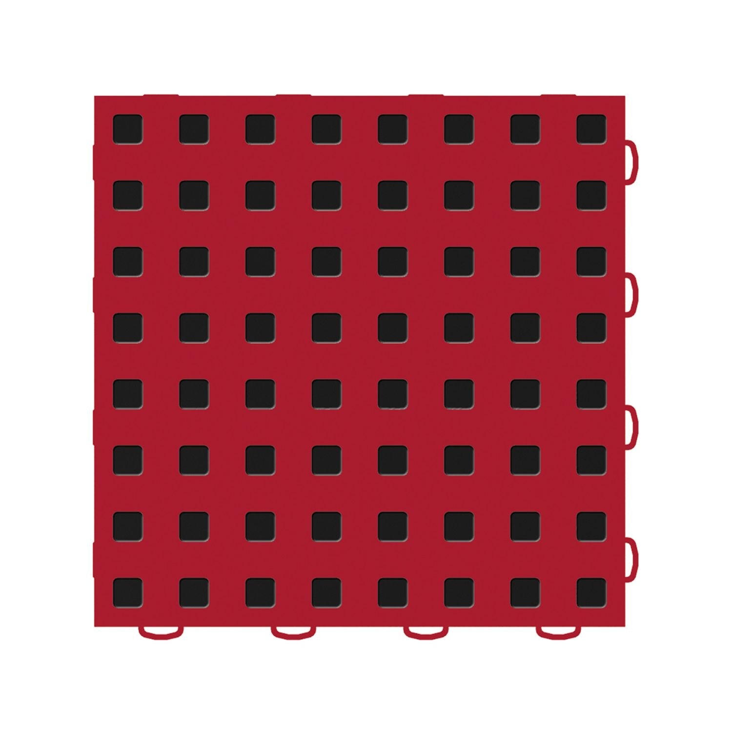 TechFloorTM tiles are custom engineered utilizing a loop and tab attaching system to tightly lock tiles together and create a seamless look. Each tile has 2 connecting edges with loops, and 2 connecting edges with tabs. They quickly attach to each other by laying the tab of one tile over the loop of the next, and snapping them down into place.