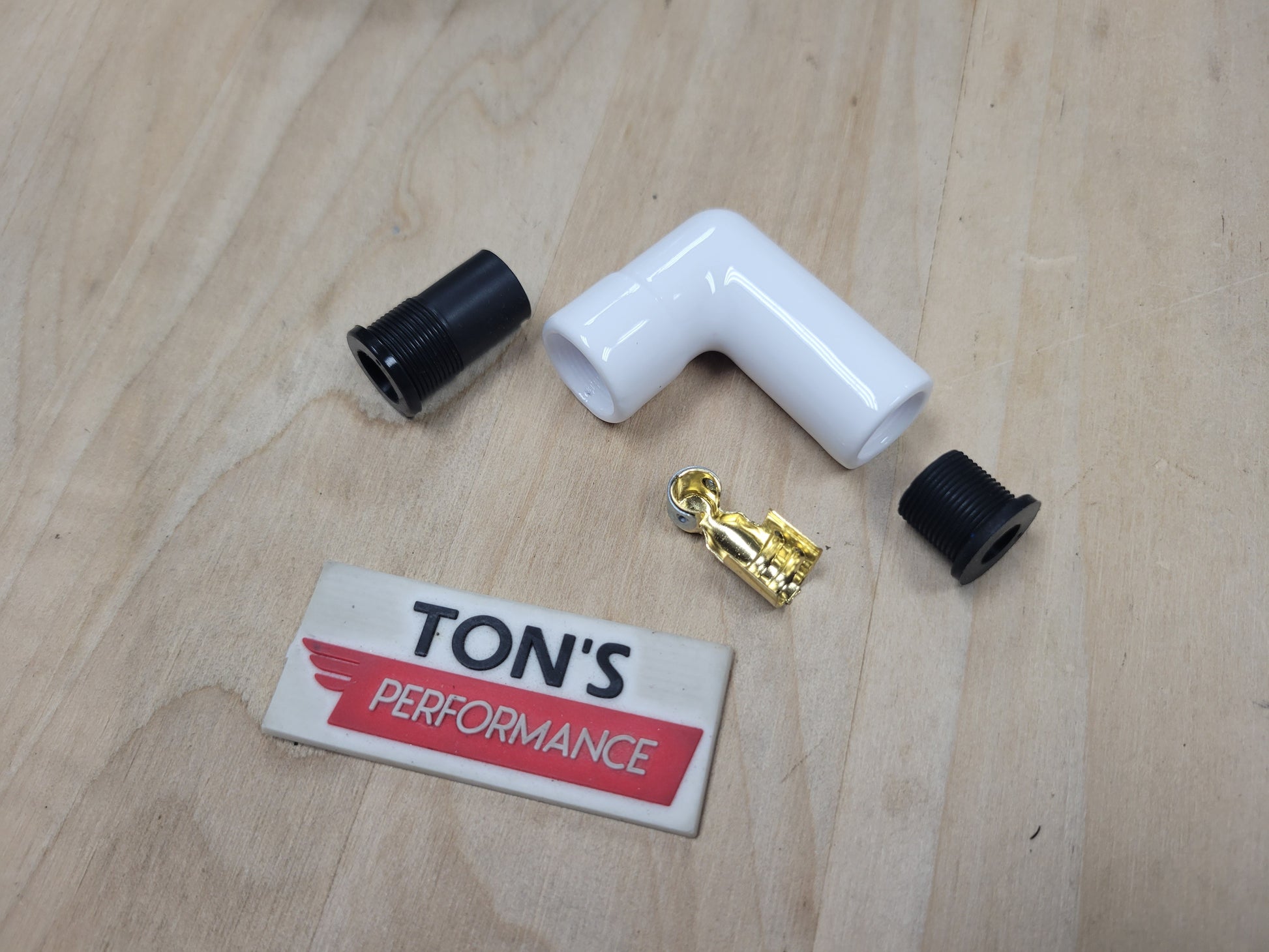 White Ceramic 8mm Spark Plug Boot 90 Degree right angle