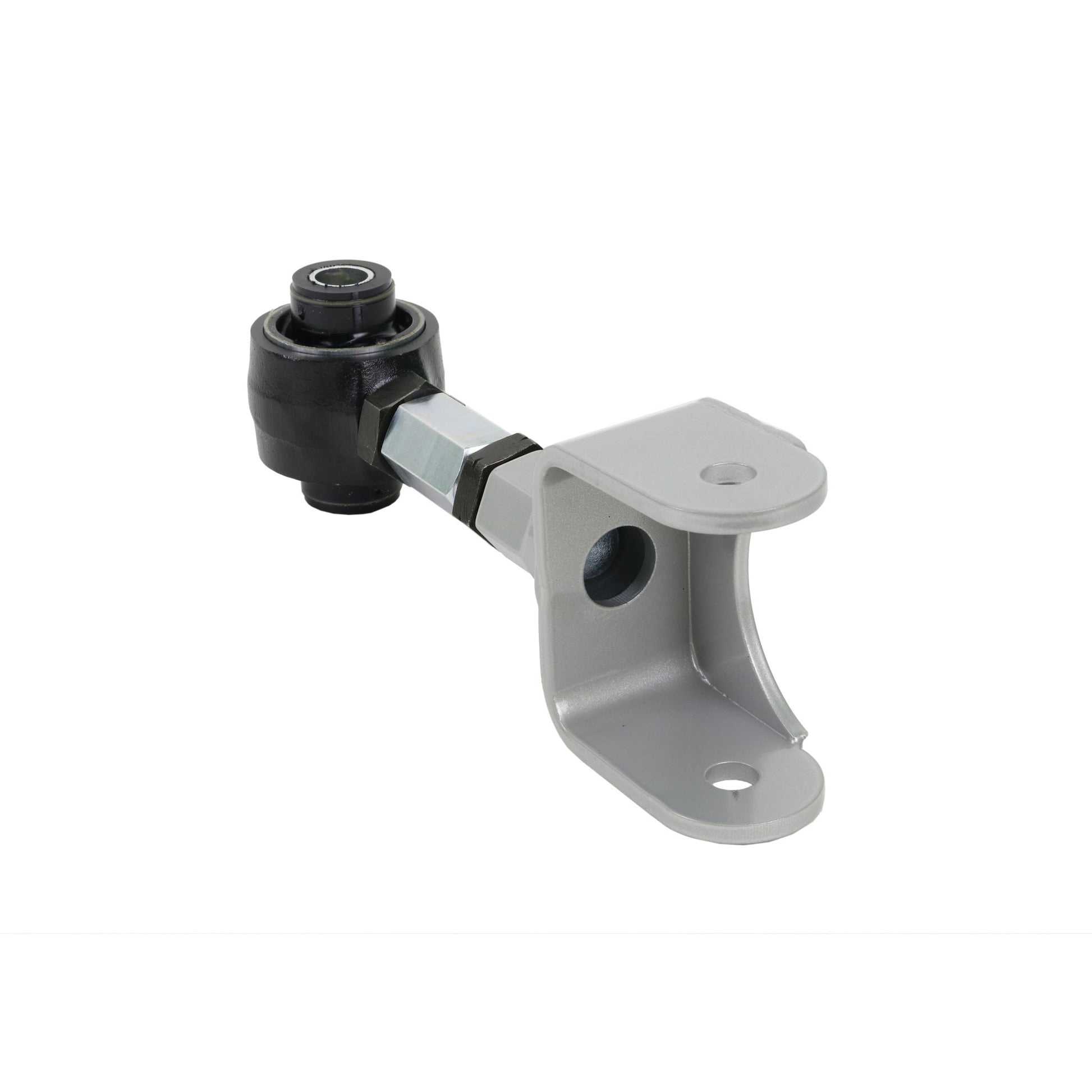 The S197 chassis third link set up has suffered from brake hop and axle tramp with the stock arm and the ultra-compliant stock bushing is designed for comfort and leaves something desired for performance driving. Whiteline's upper control arm is built with 4130 Chromalloy and features the longer arm length which Ford incorporated in the 2011 change which reduces brake hop. The synthetic elastomer bushing adds increased stability to the rear end without the harshness of the commonly used bearing design and features and eccentric crush tube which allows pinion angle / instant center adjustment without weakening the arm with a turnbuckle adjustment. The pinhole voiding feature allows the bushing to articulate without binding. The heavy duty mount adds to the increased rigidity of the arm and is designed to be universal for all years of the S197 chassis.