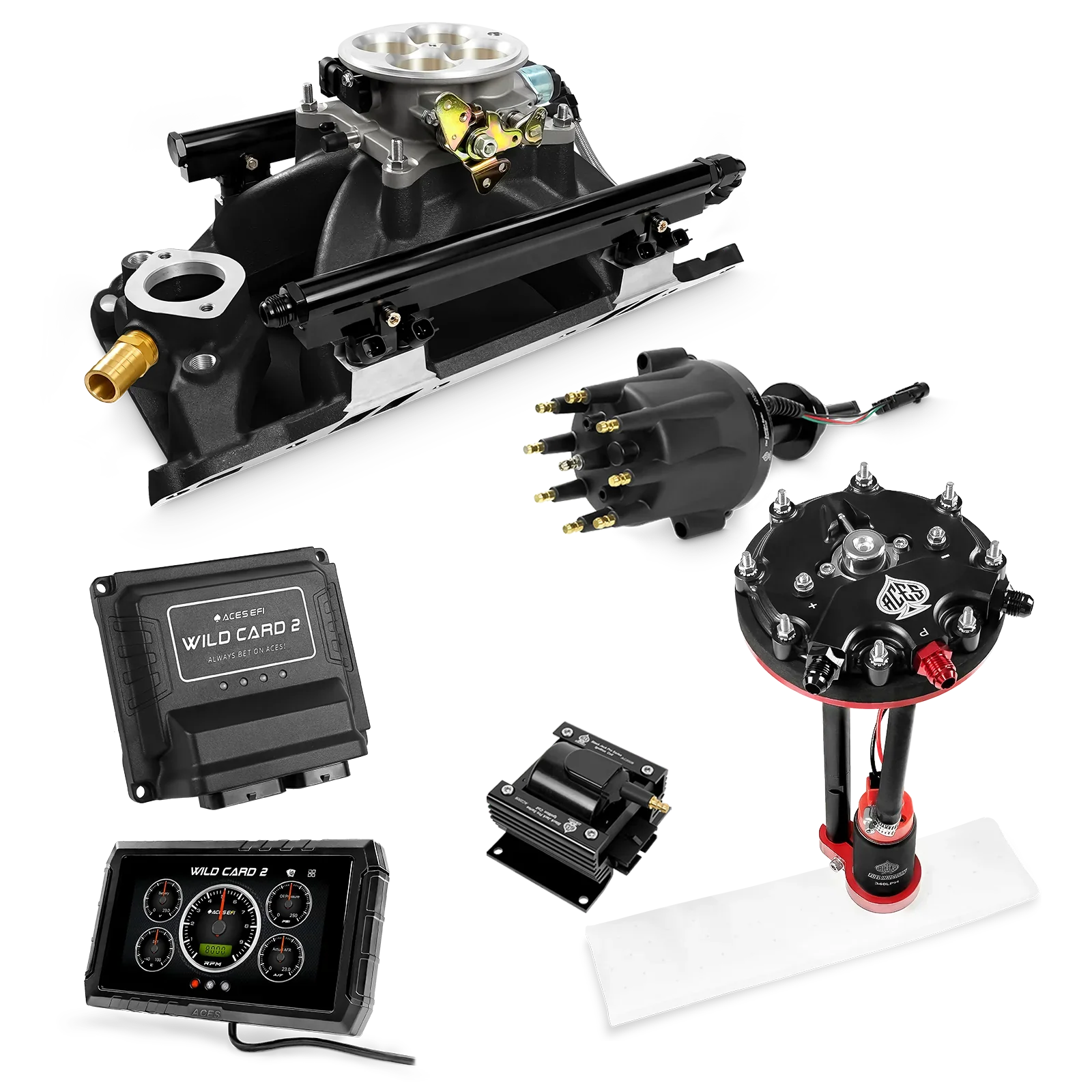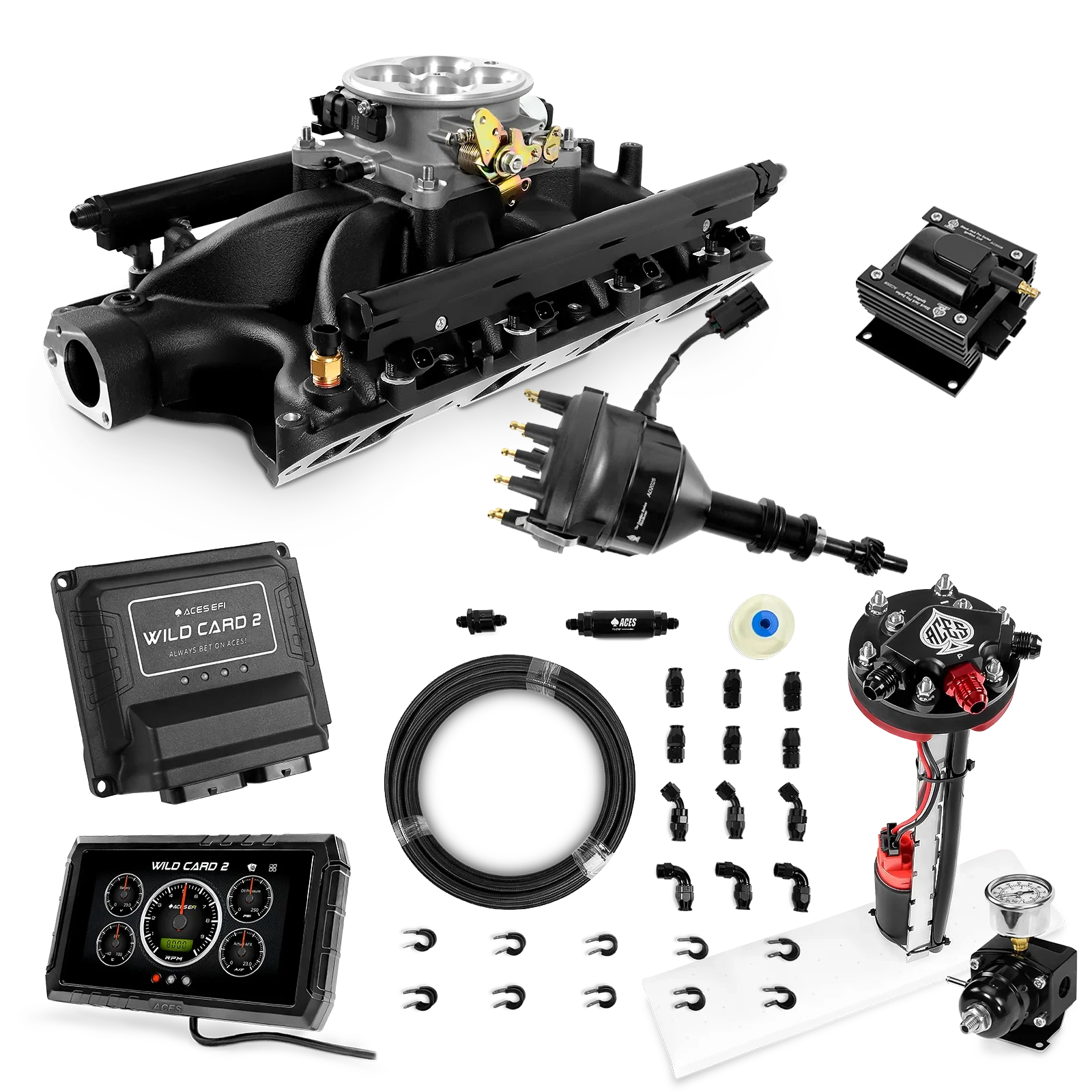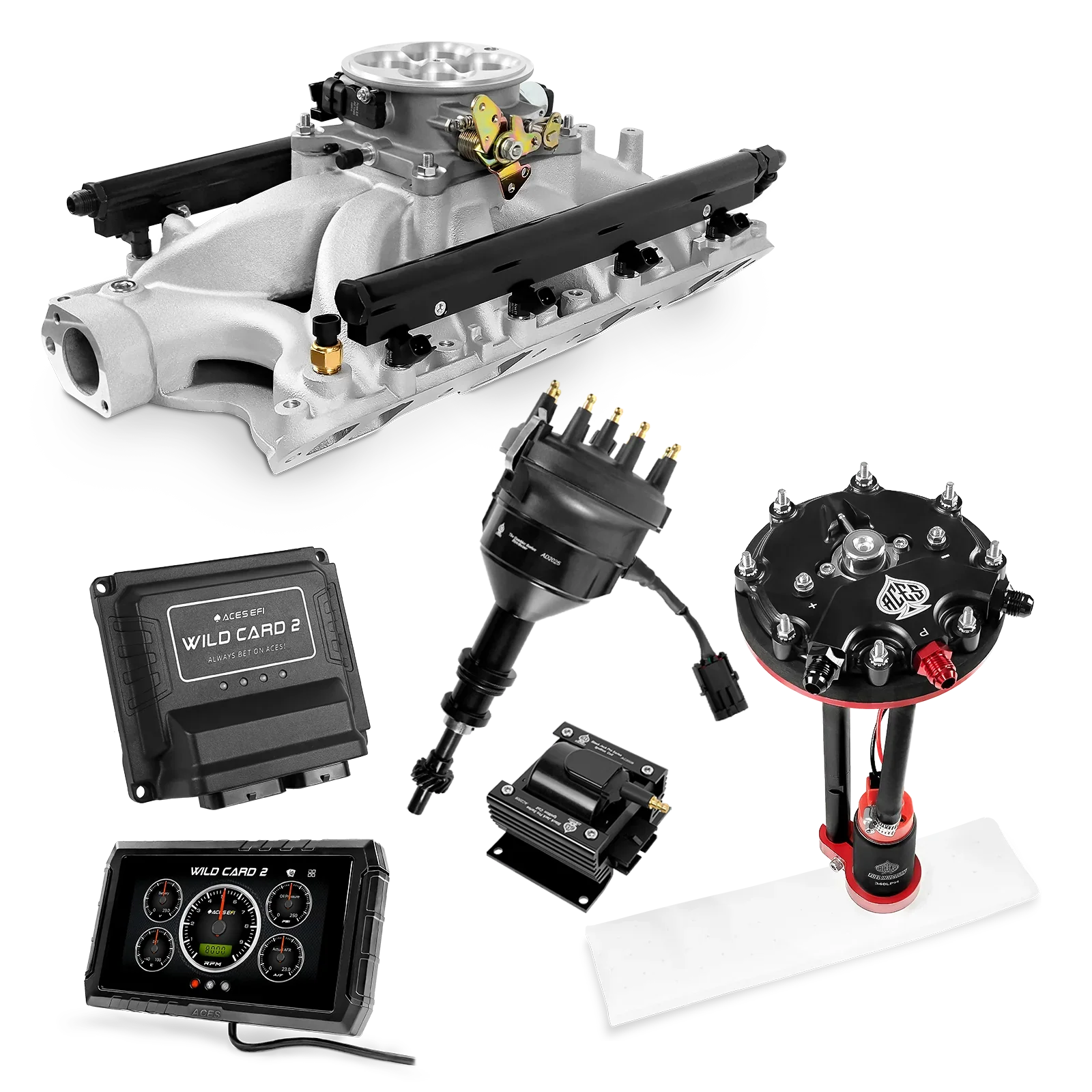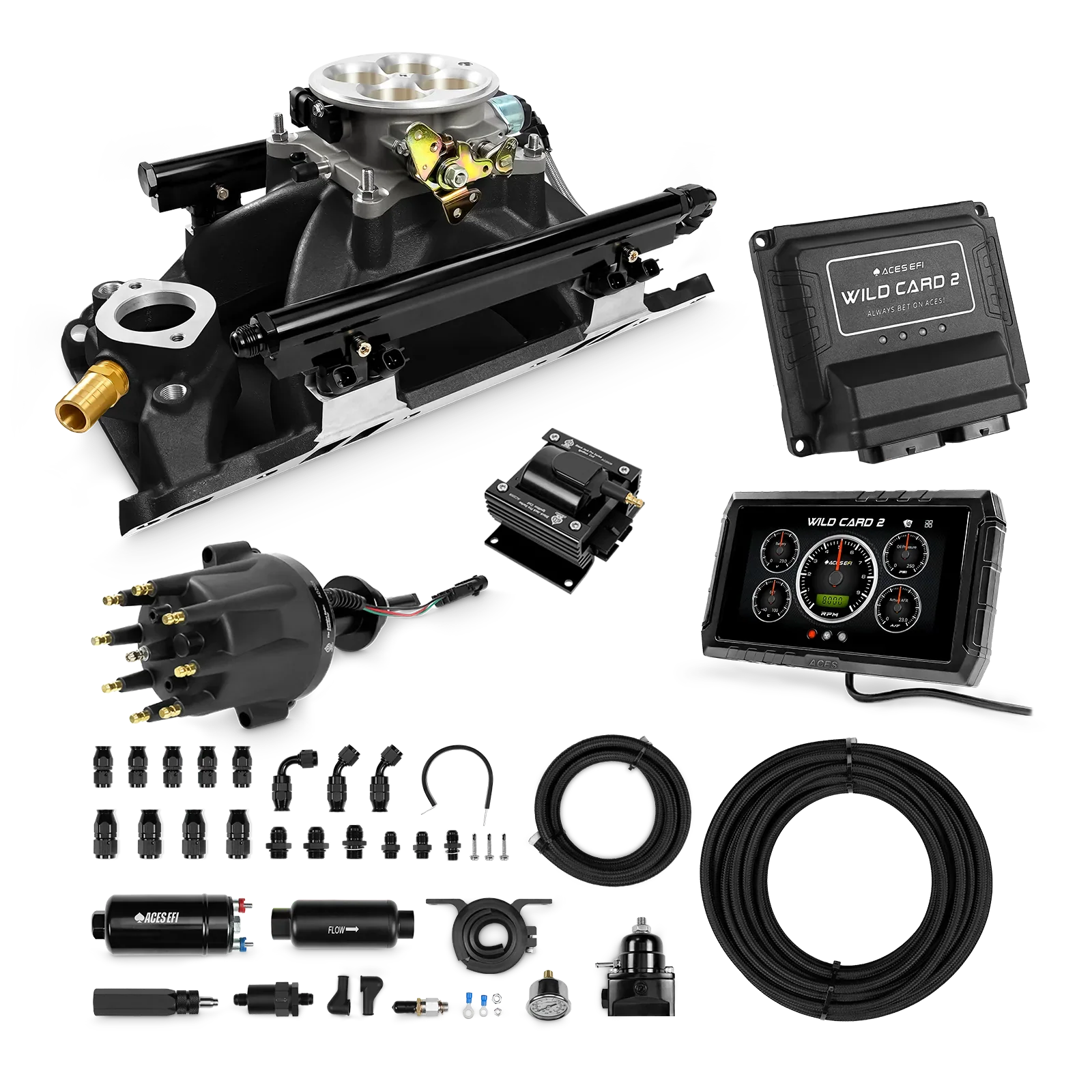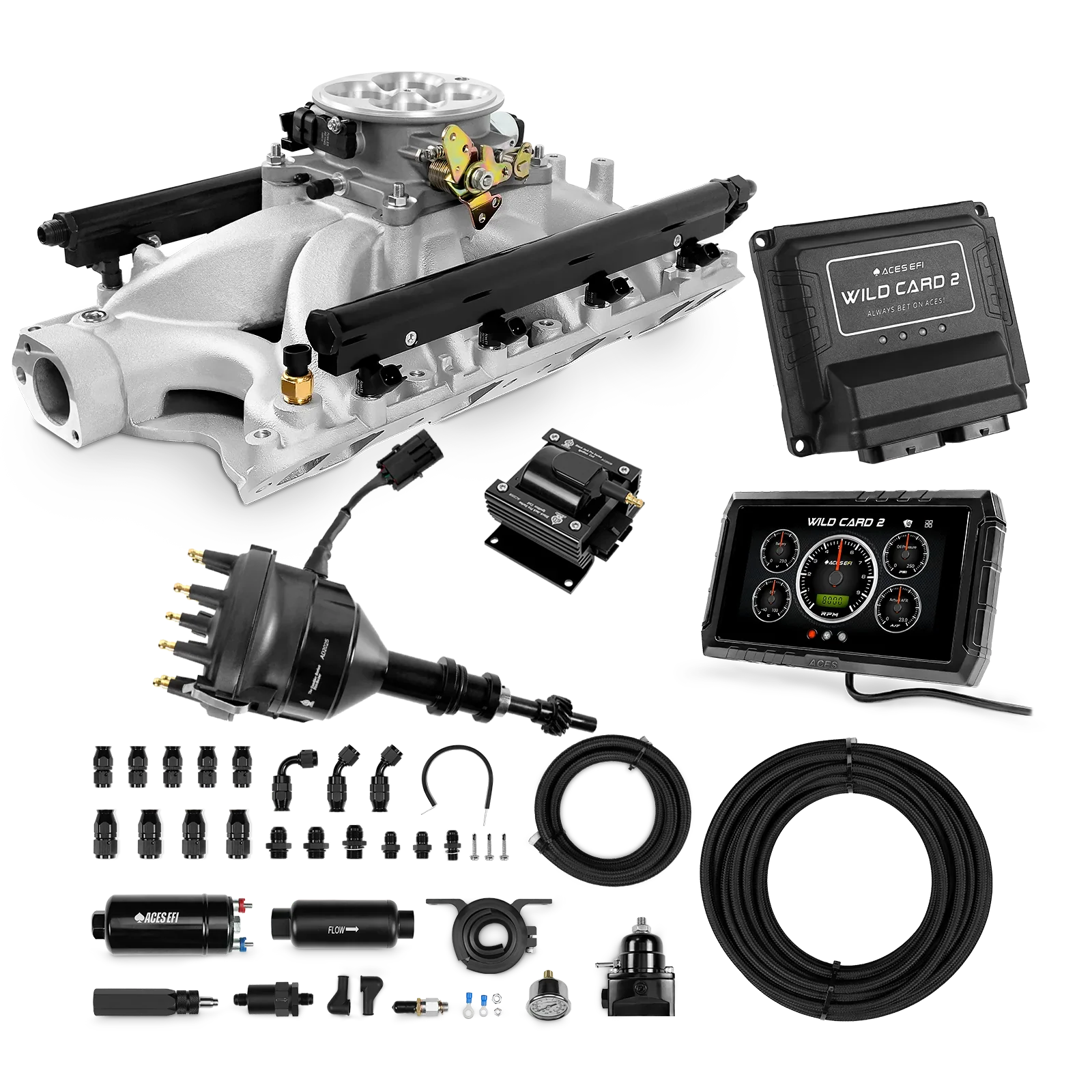 The Aces Wild Card 2 is a fully customizable, true Sequential Multi-Port EFI (MPEFI) system engineered for classic 8-cylinder engines. Unlike traditional TBI setups or aftermarket systems that use bank-to-bank injection, the Wild Card 2 delivers precise fuel metering to each cylinder, giving you superior throttle response, balanced fuel distribution, and more power across the RPM range.