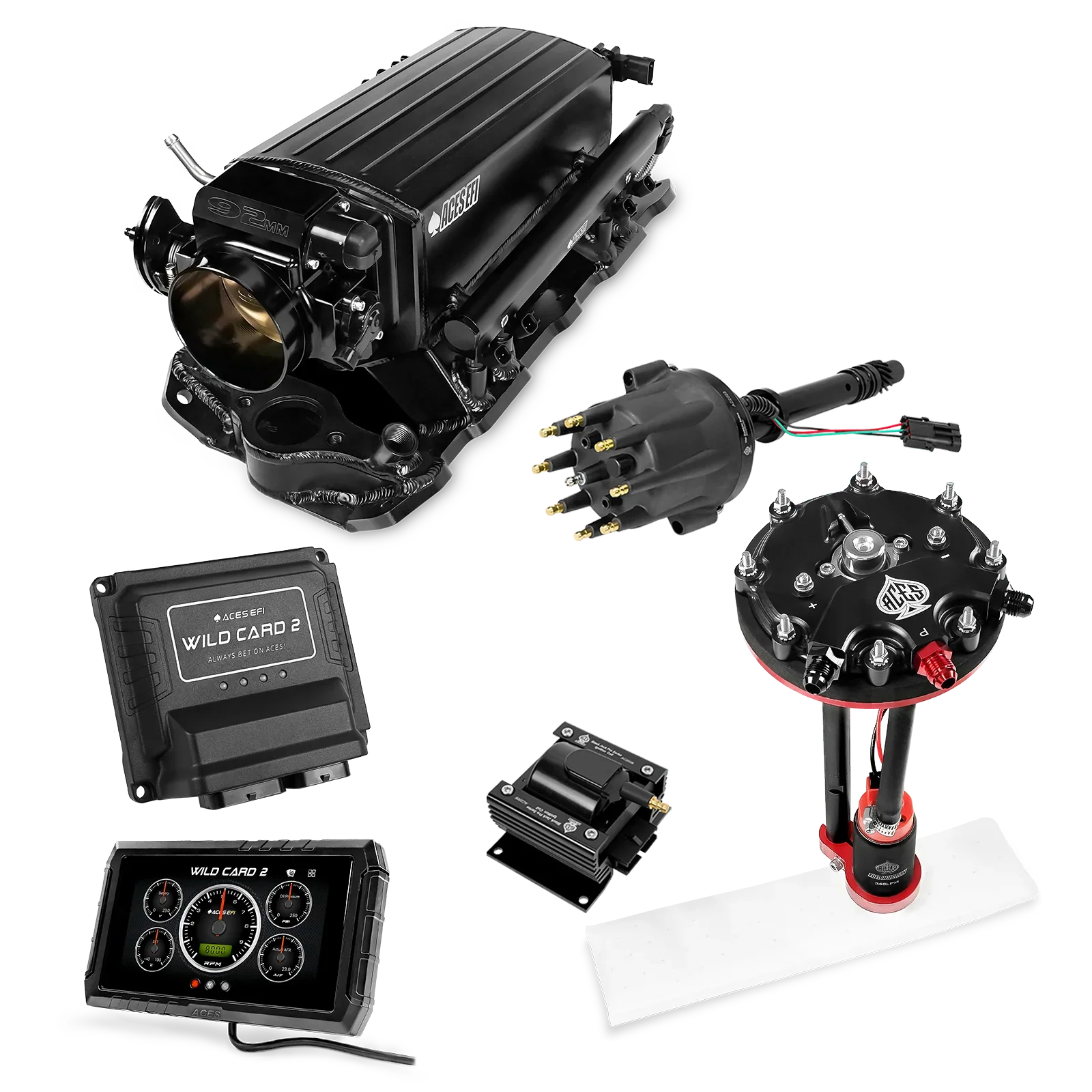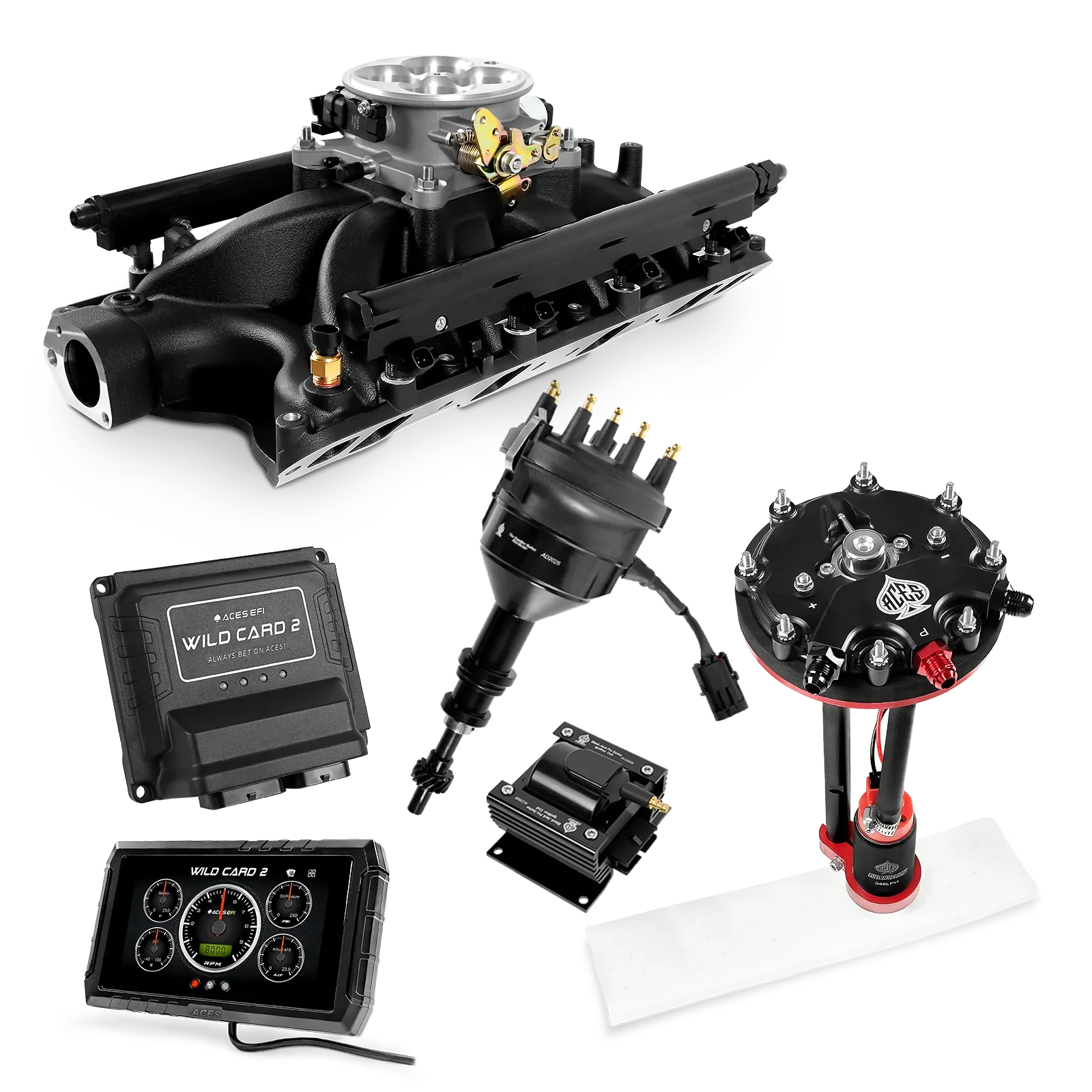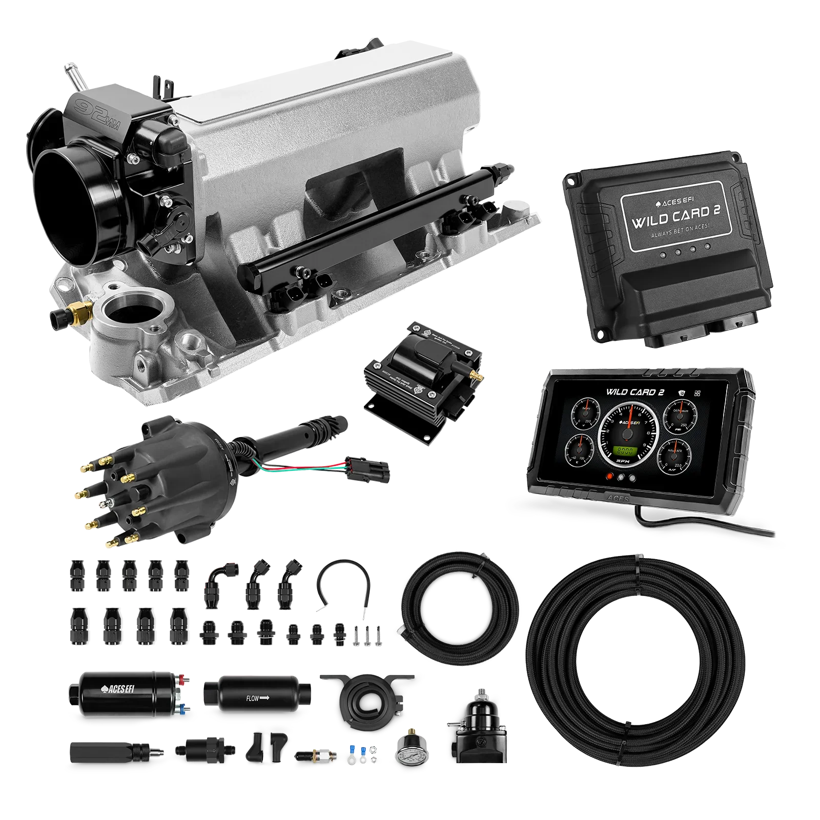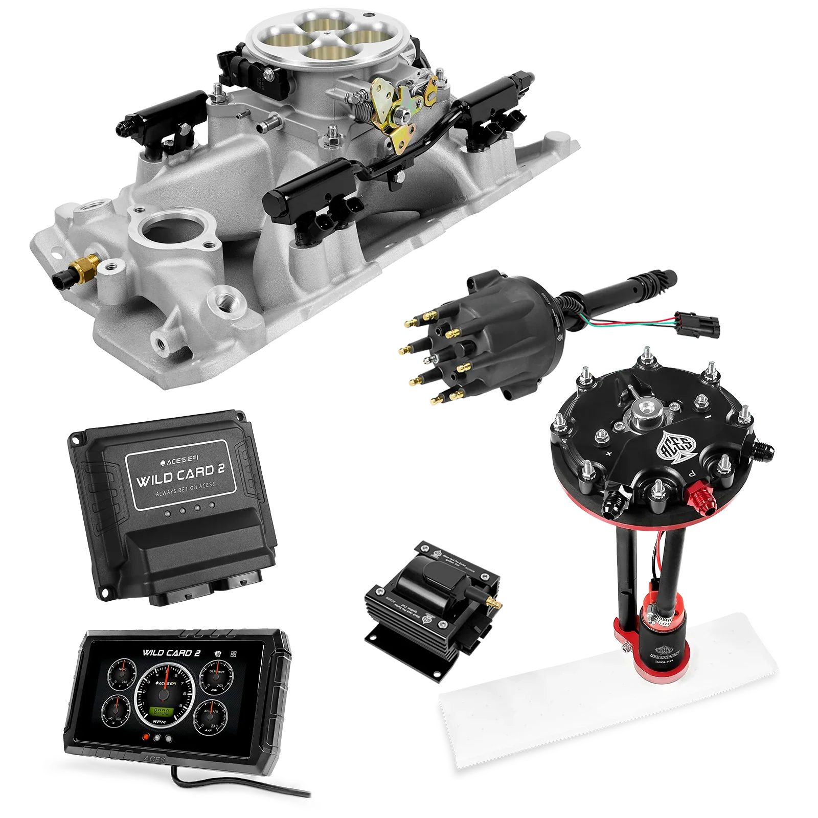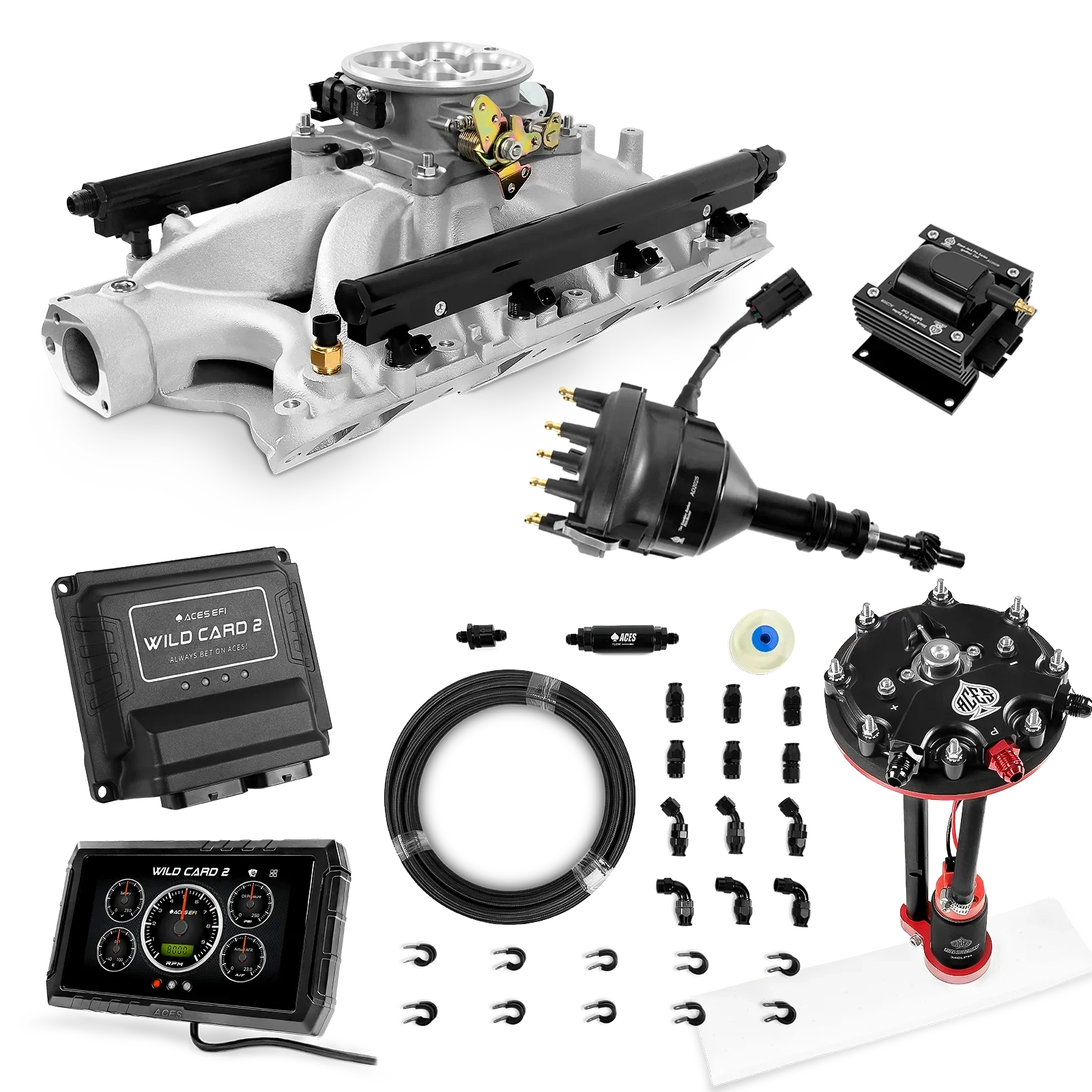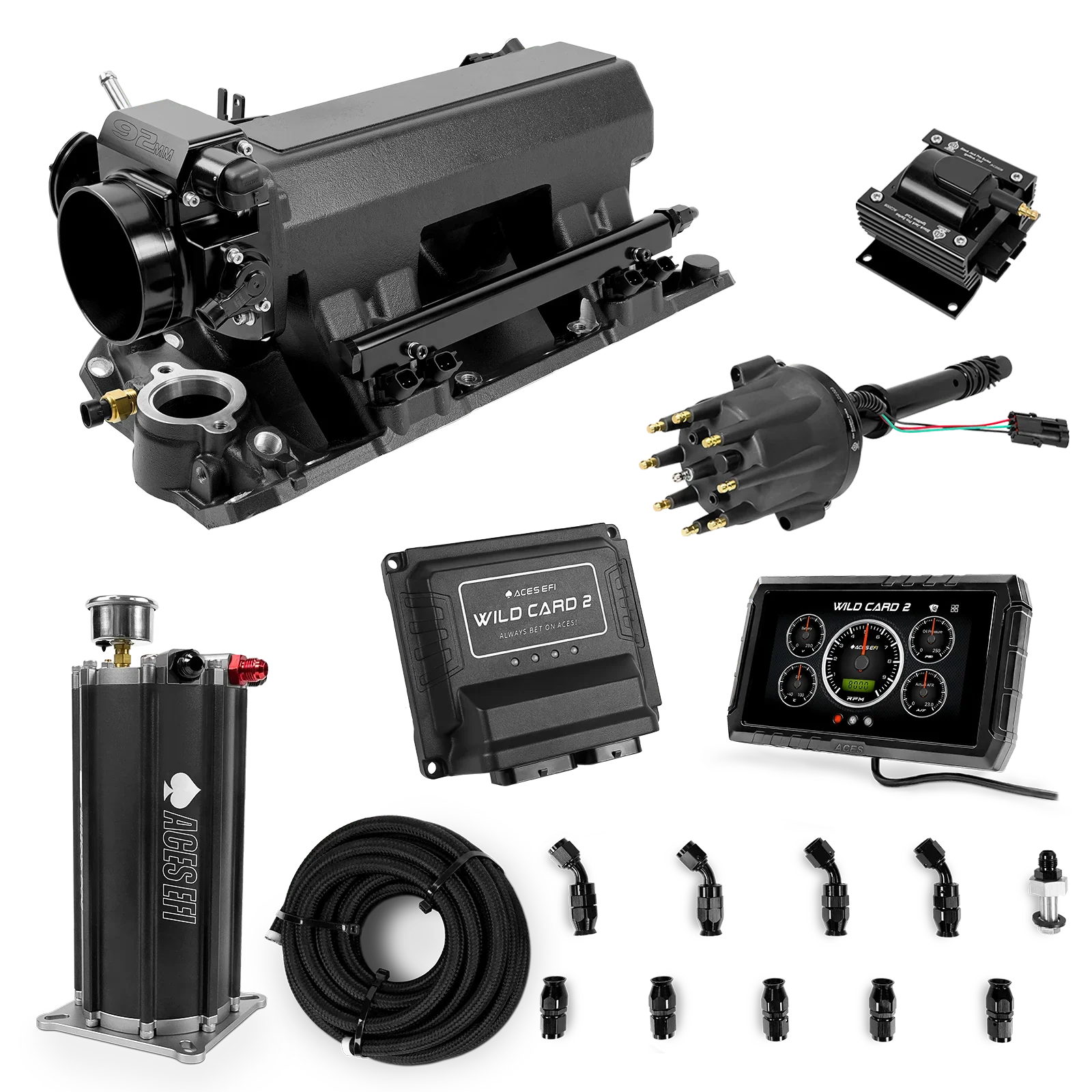 The Aces Wild Card 2 is a fully customizable, true Sequential Multi-Port EFI (MPEFI) system engineered for classic 8-cylinder engines. Unlike traditional TBI setups or aftermarket systems that use bank-to-bank injection, the Wild Card 2 delivers precise fuel metering to each cylinder, giving you superior throttle response, balanced fuel distribution, and more power across the RPM range.