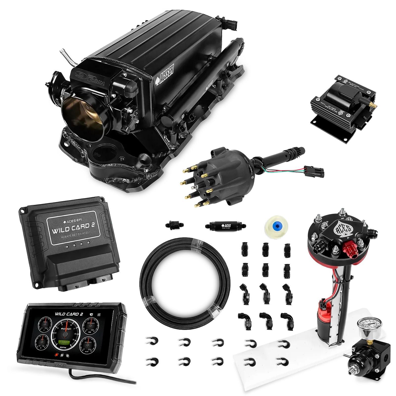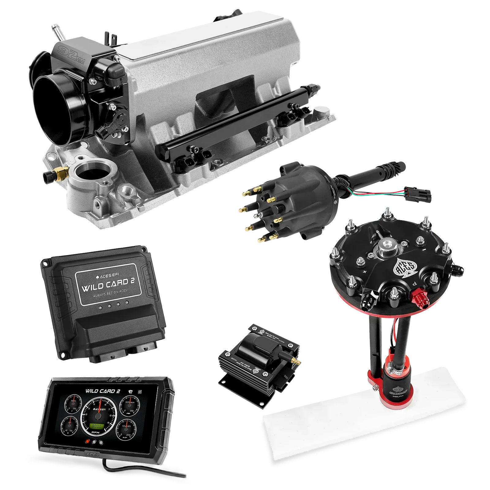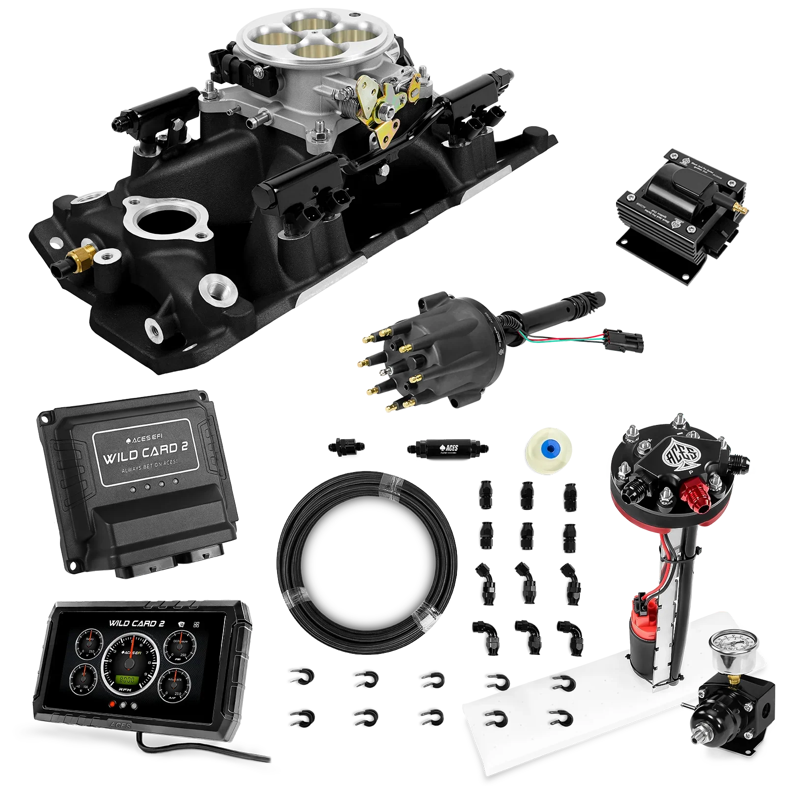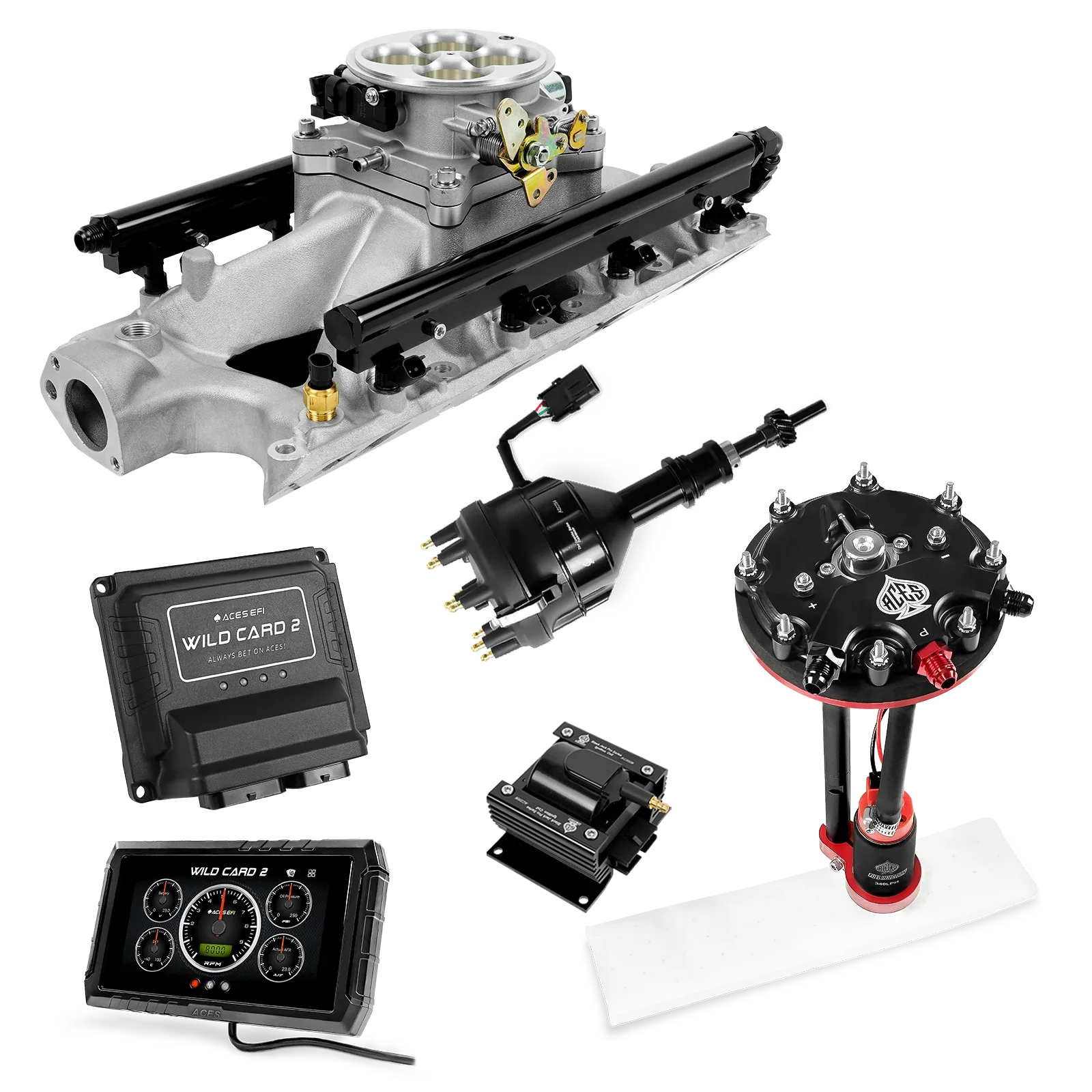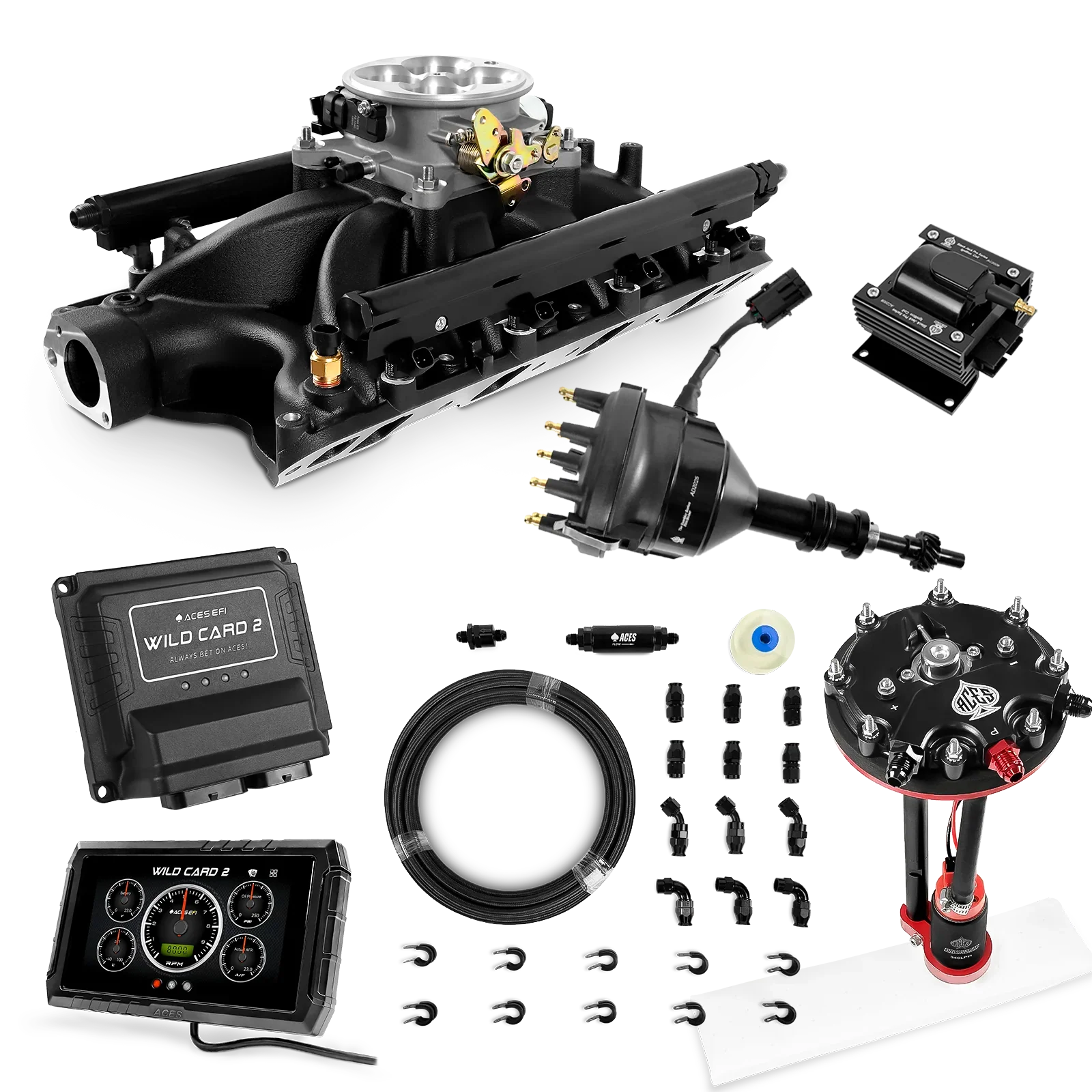 The Aces Wild Card 2 is a fully customizable, true Sequential Multi-Port EFI (MPEFI) system engineered for classic 8-cylinder engines. Unlike traditional TBI setups or aftermarket systems that use bank-to-bank injection, the Wild Card 2 delivers precise fuel metering to each cylinder, giving you superior throttle response, balanced fuel distribution, and more power across the RPM range.