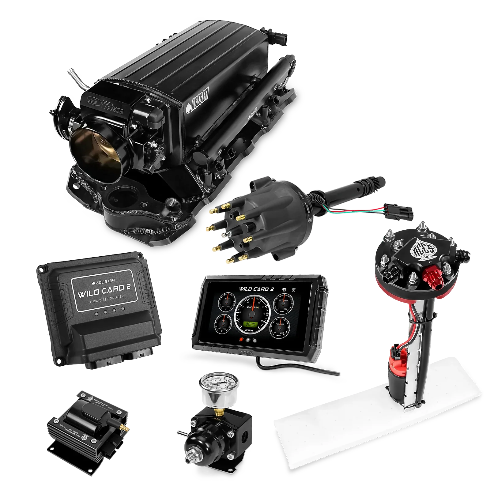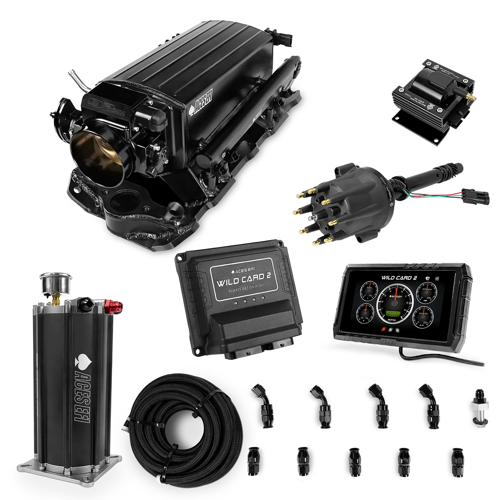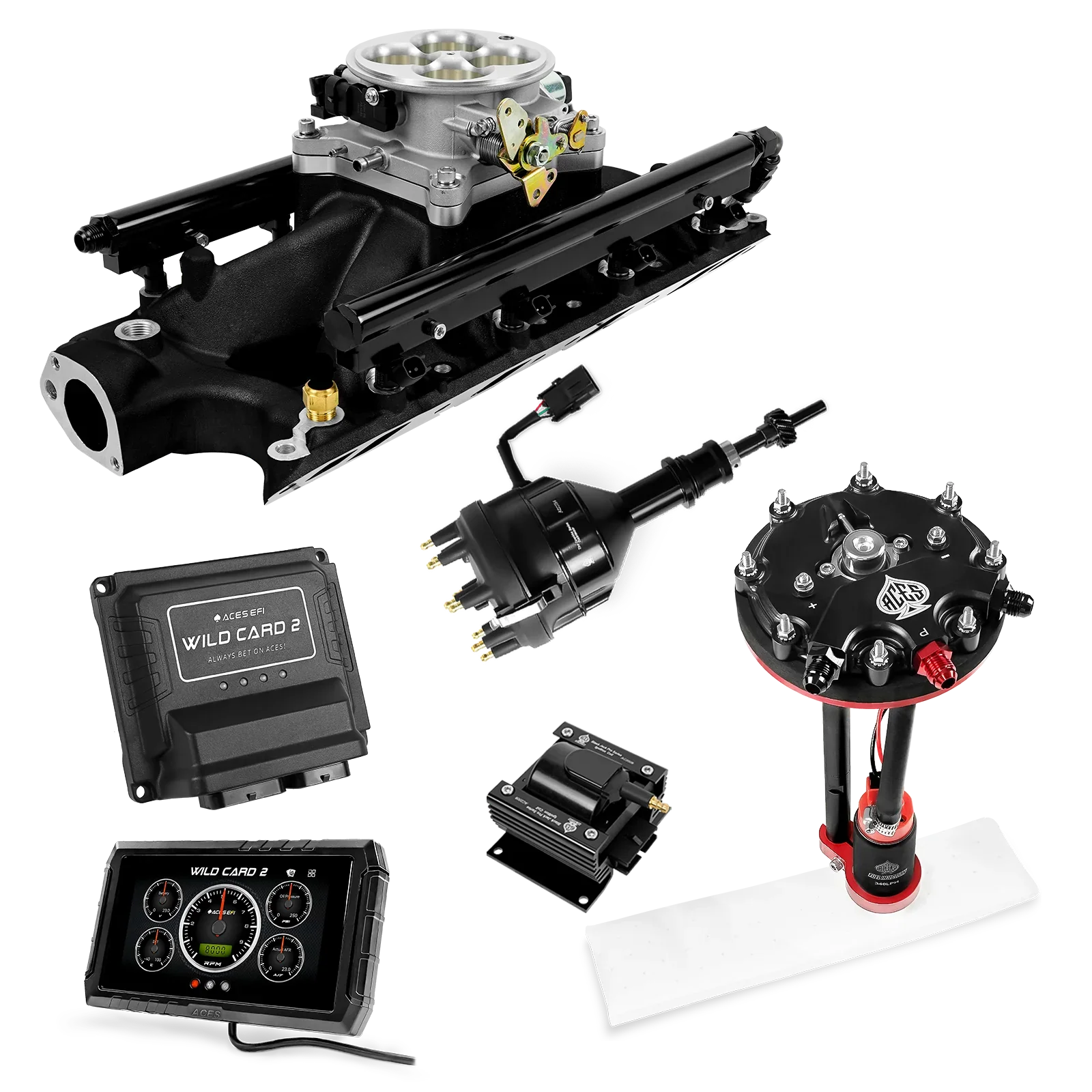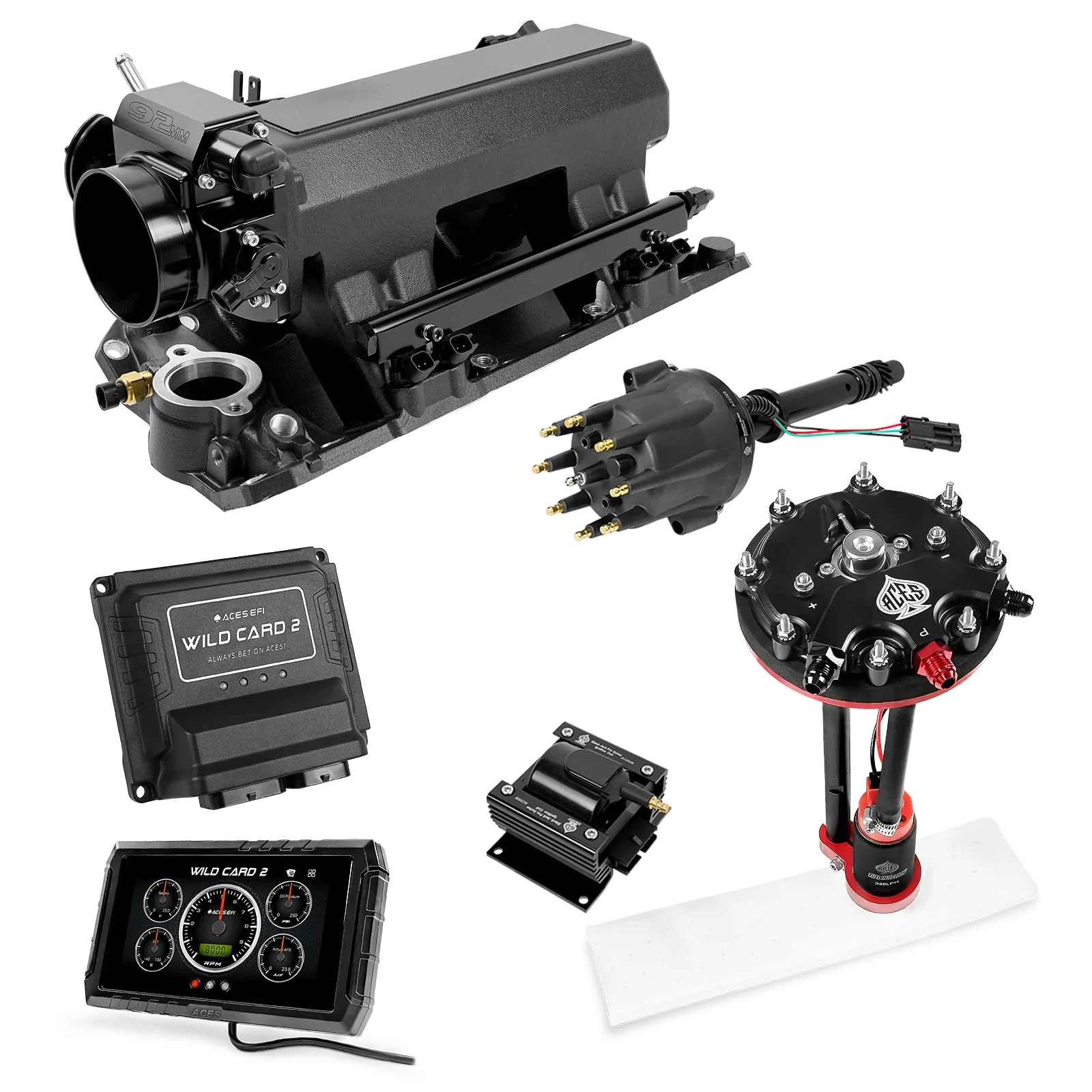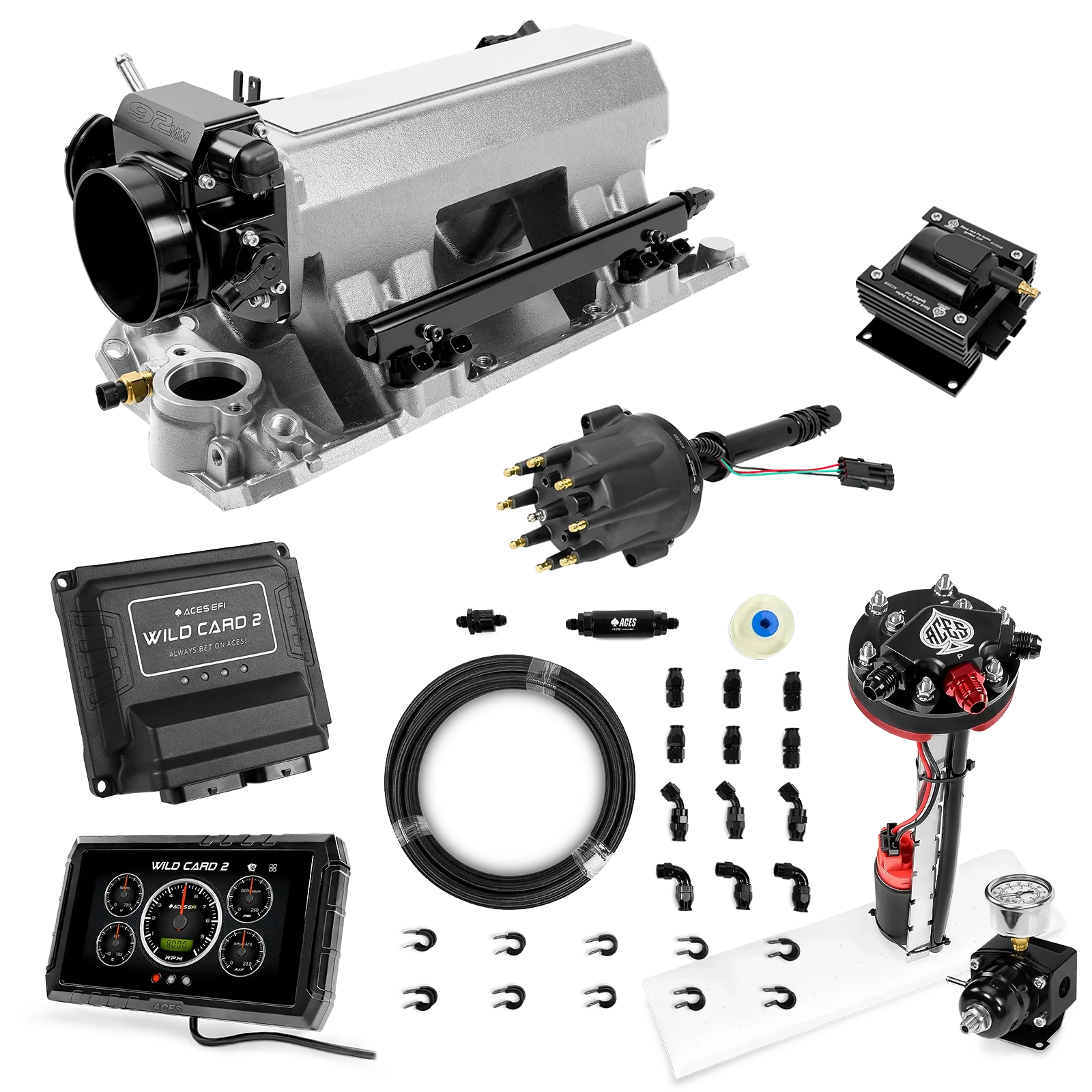 The Aces Wild Card 2 is a fully customizable, true Sequential Multi-Port EFI (MPEFI) system engineered for classic 8-cylinder engines. Unlike traditional TBI setups or aftermarket systems that use bank-to-bank injection, the Wild Card 2 delivers precise fuel metering to each cylinder, giving you superior throttle response, balanced fuel distribution, and more power across the RPM range.