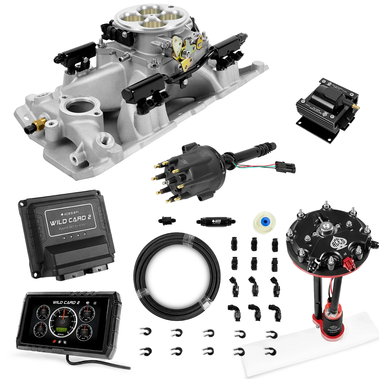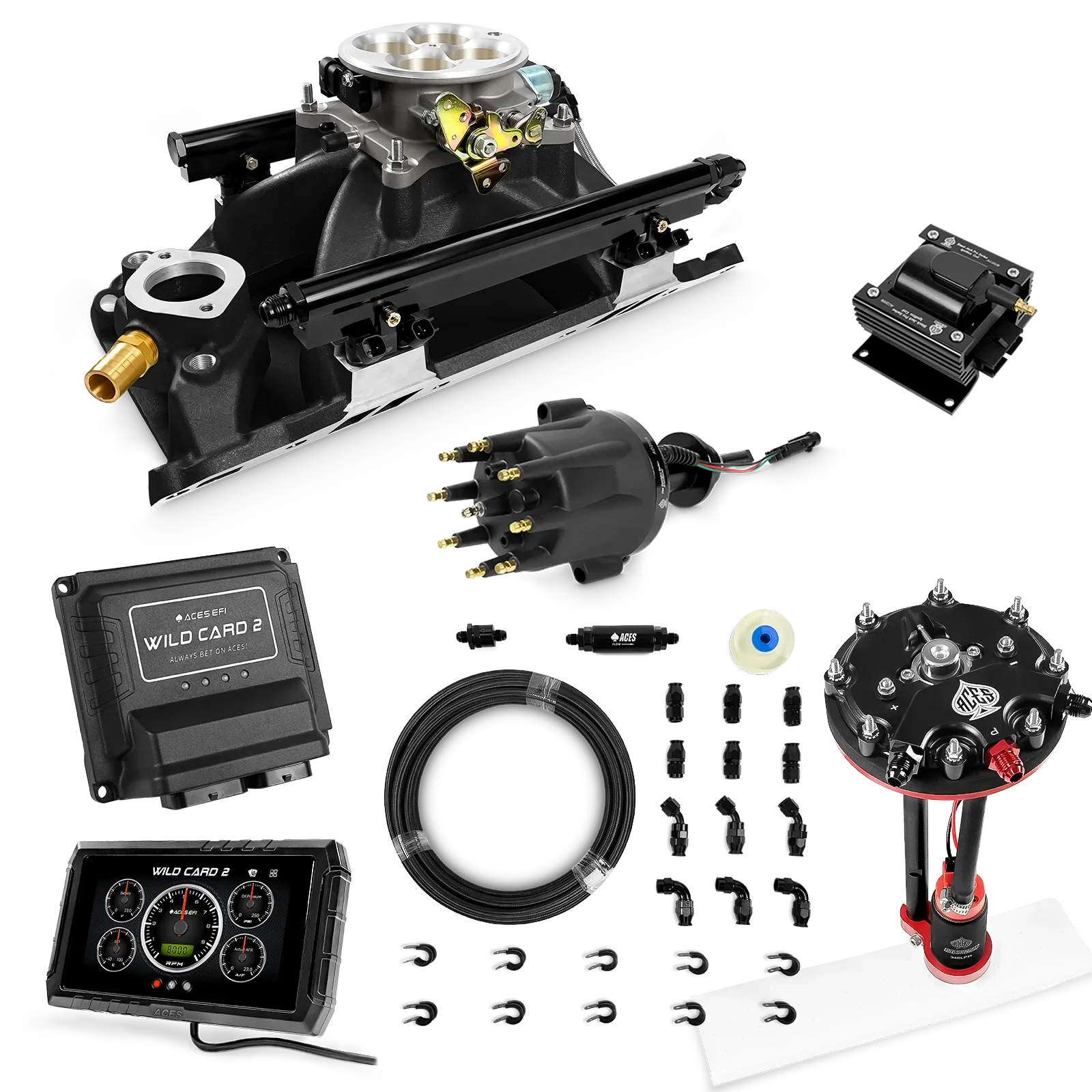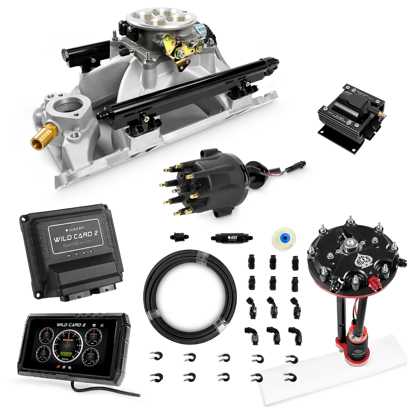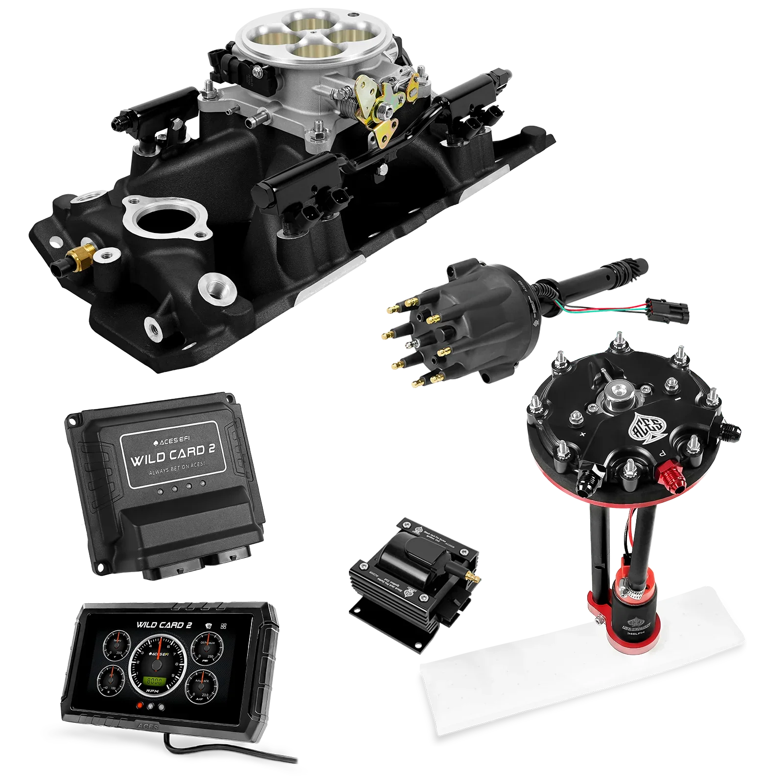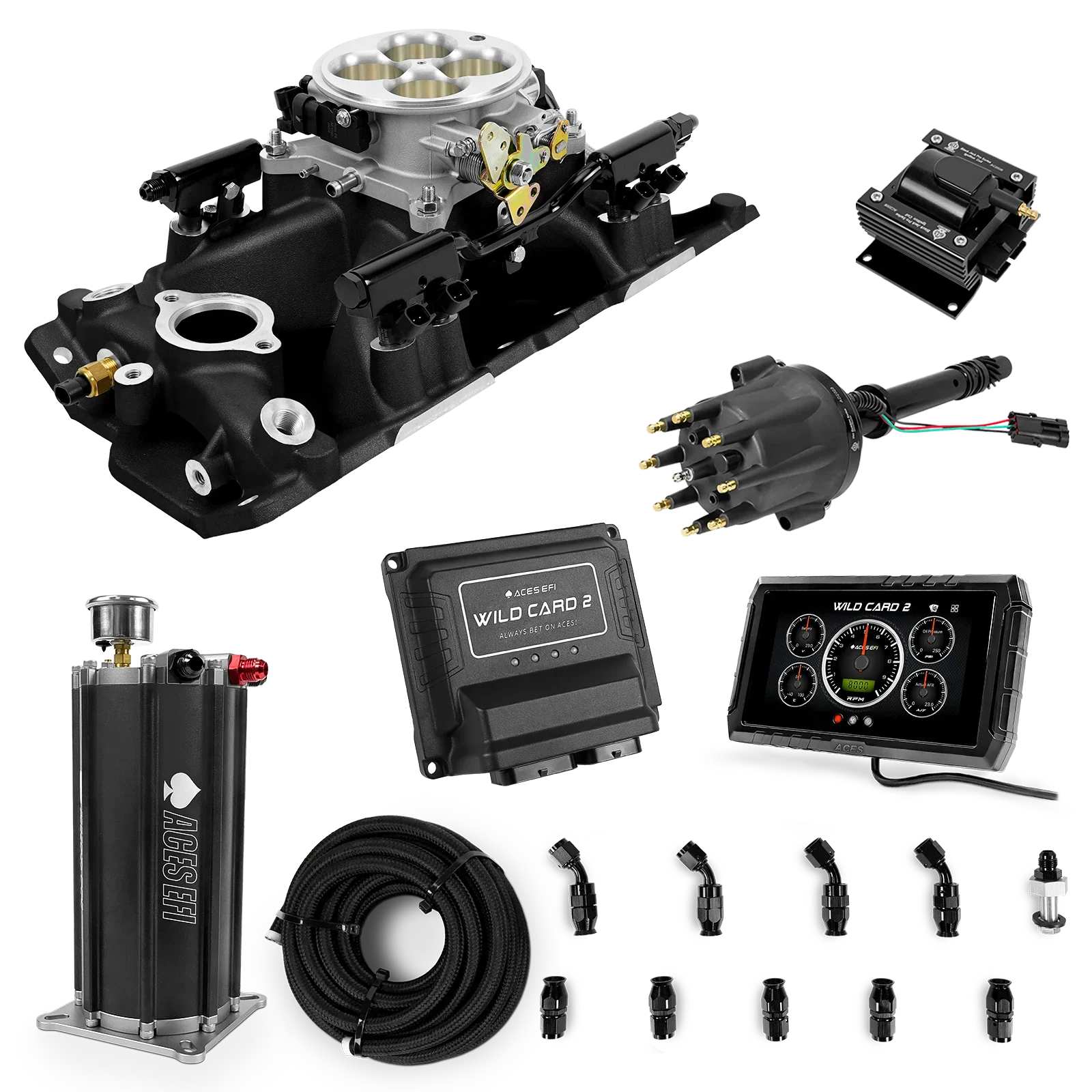 The Aces Wild Card 2 is a fully customizable, true Sequential Multi-Port EFI (MPEFI) system engineered for classic 8-cylinder engines. Unlike traditional TBI setups or aftermarket systems that use bank-to-bank injection, the Wild Card 2 delivers precise fuel metering to each cylinder, giving you superior throttle response, balanced fuel distribution, and more power across the RPM range.
