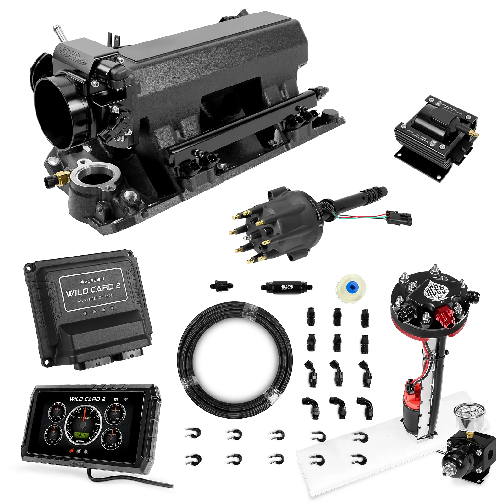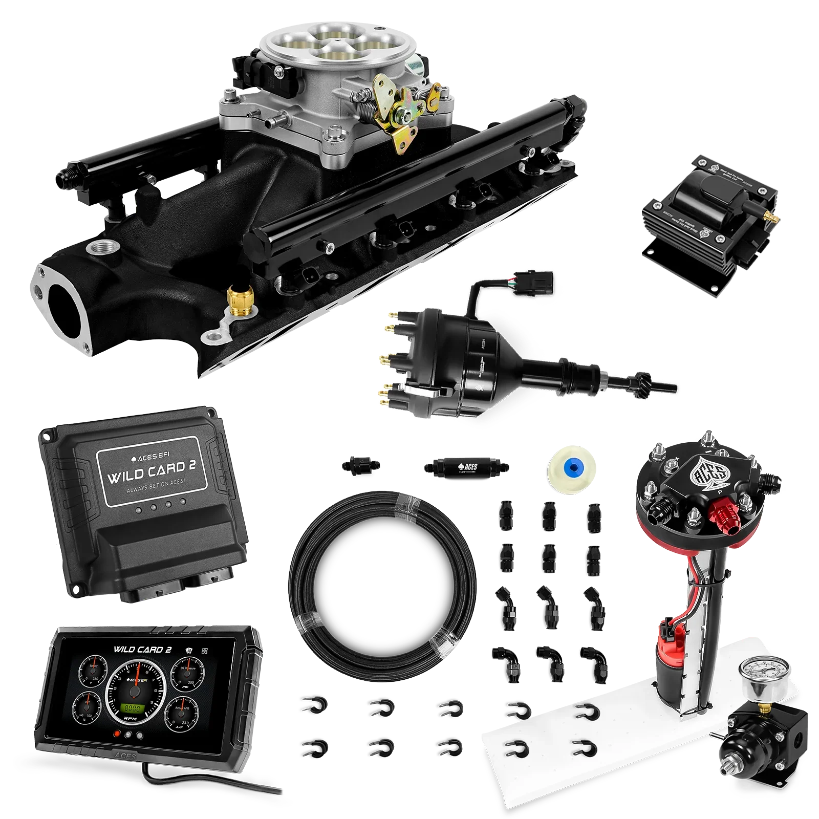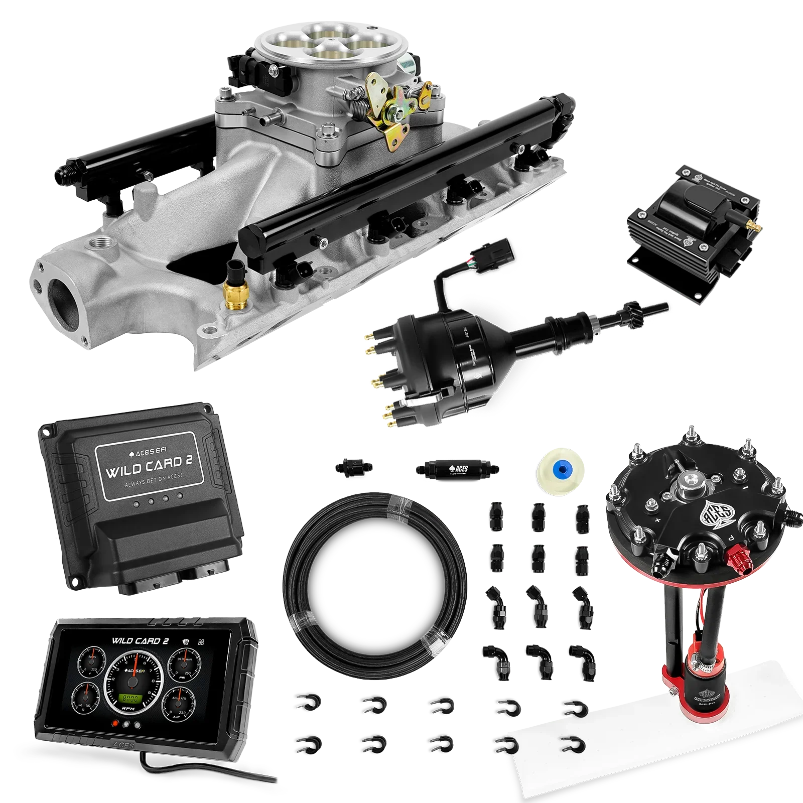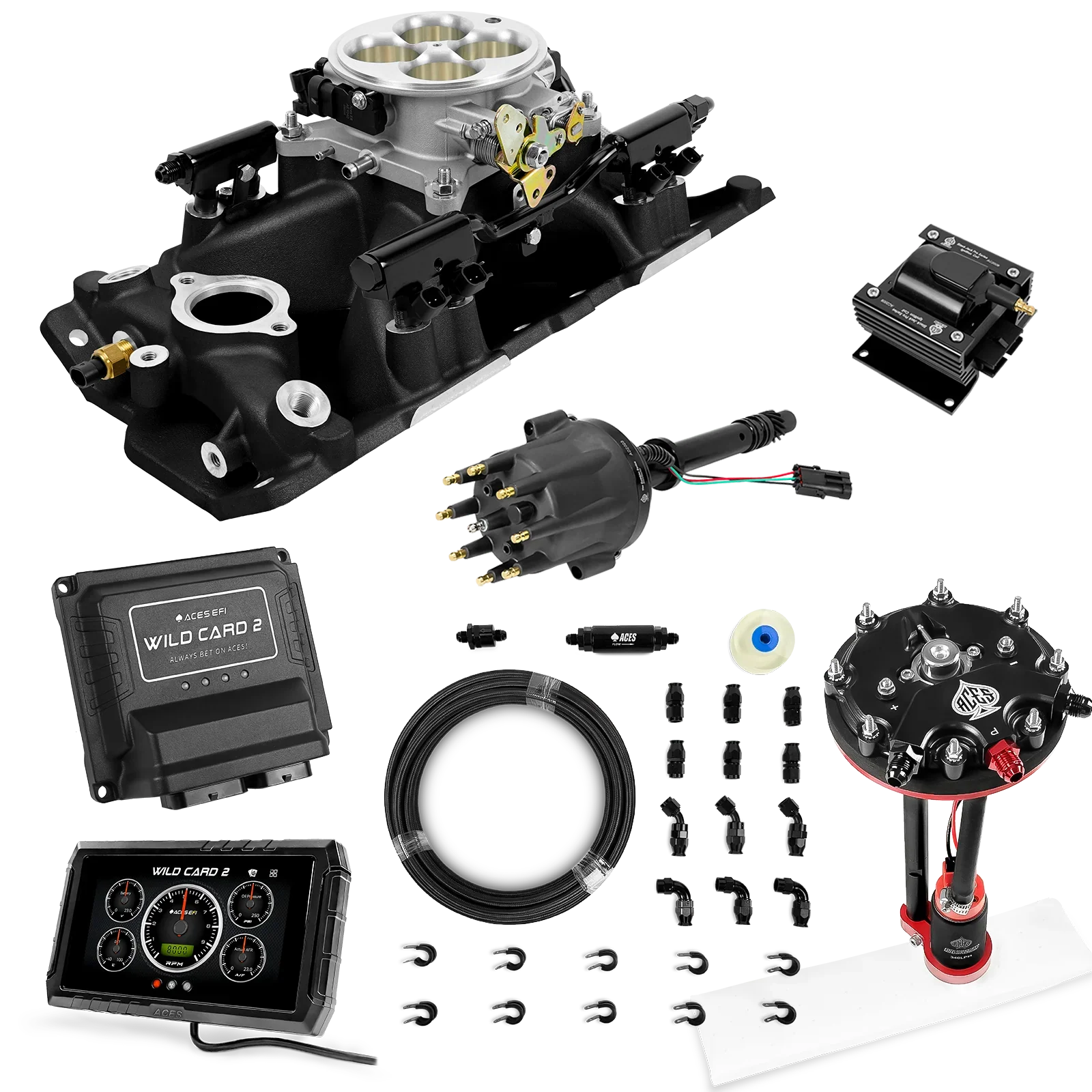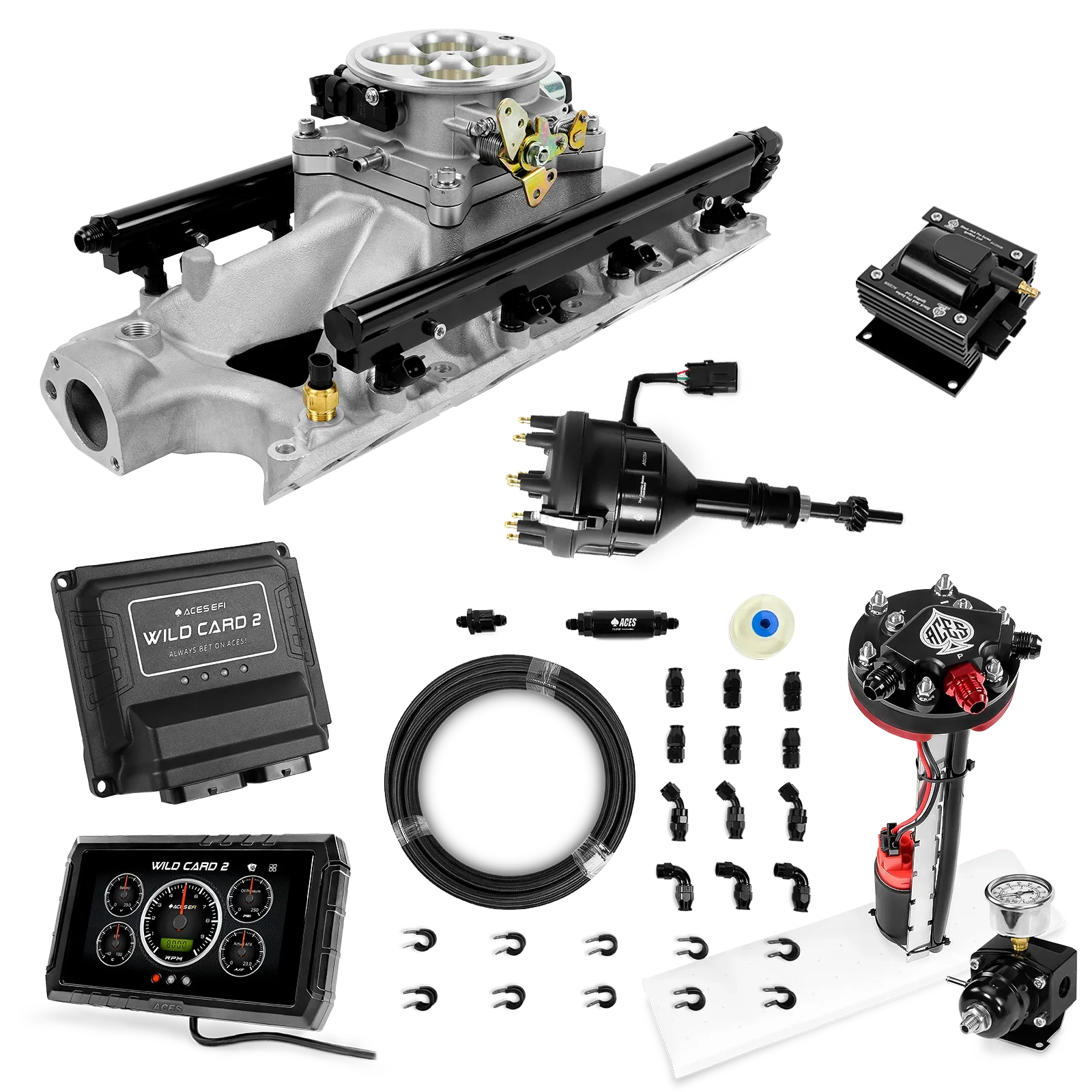 The Aces Wild Card 2 is a fully customizable, true Sequential Multi-Port EFI (MPEFI) system engineered for classic 8-cylinder engines. Unlike traditional TBI setups or aftermarket systems that use bank-to-bank injection, the Wild Card 2 delivers precise fuel metering to each cylinder, giving you superior throttle response, balanced fuel distribution, and more power across the RPM range.