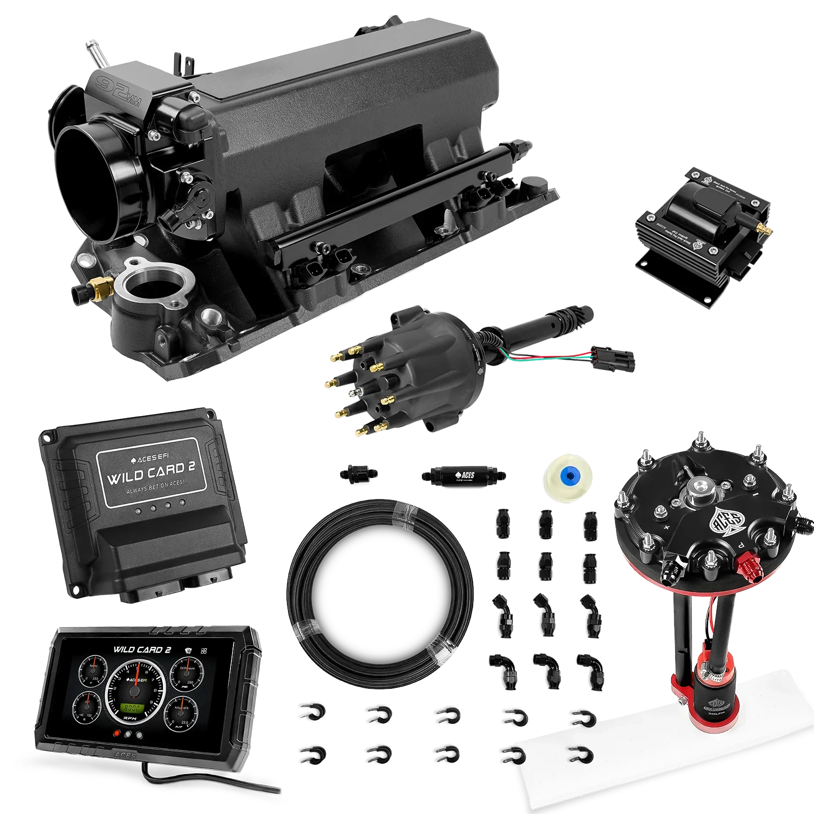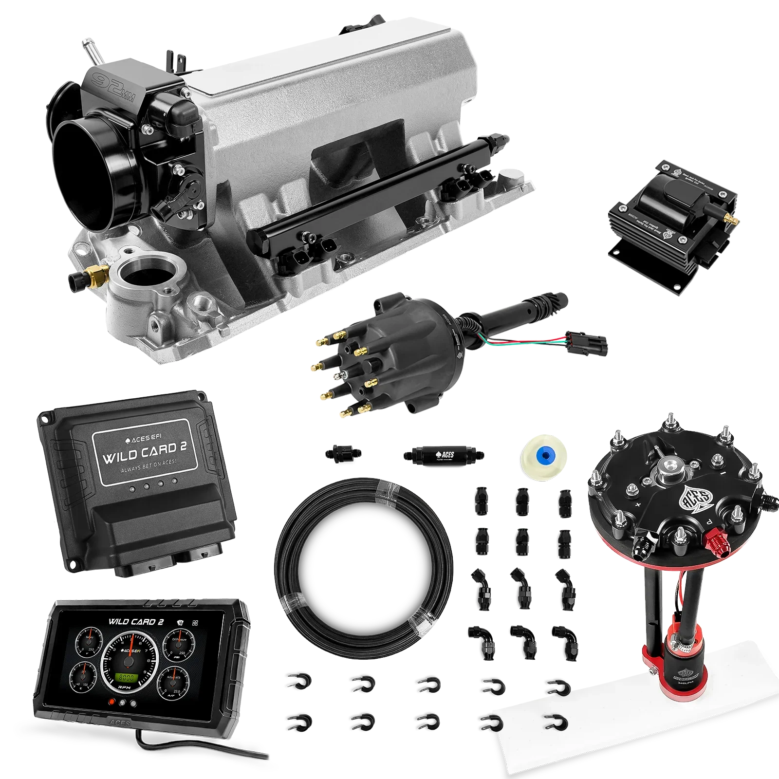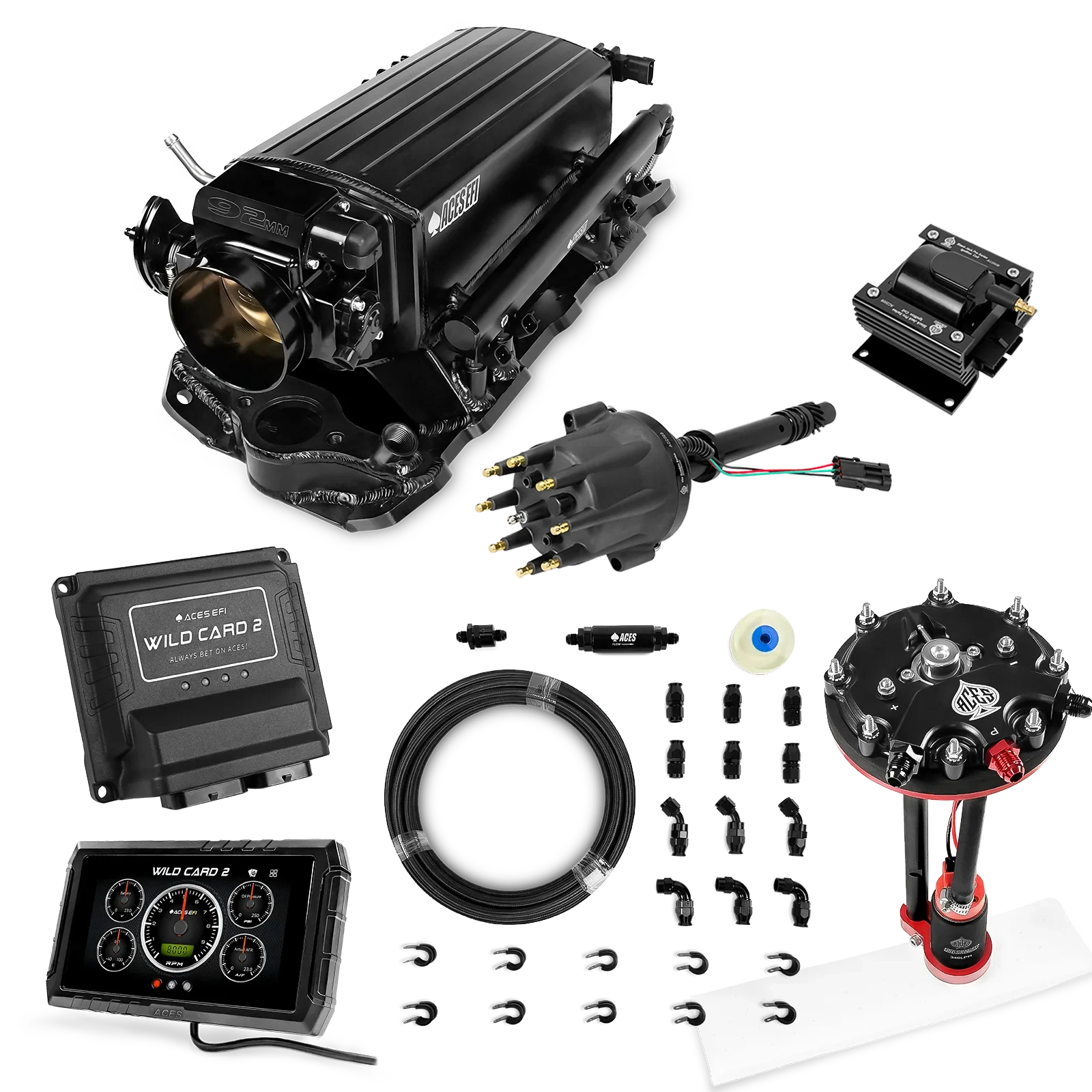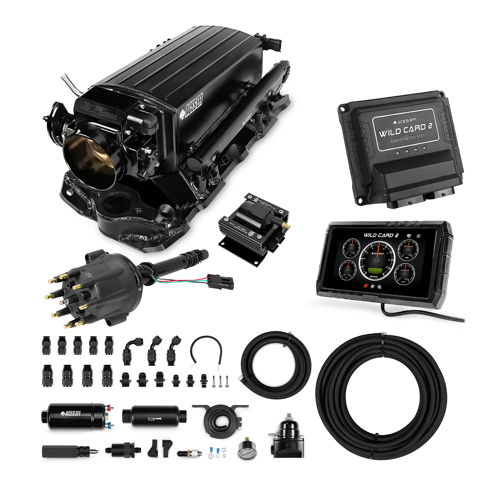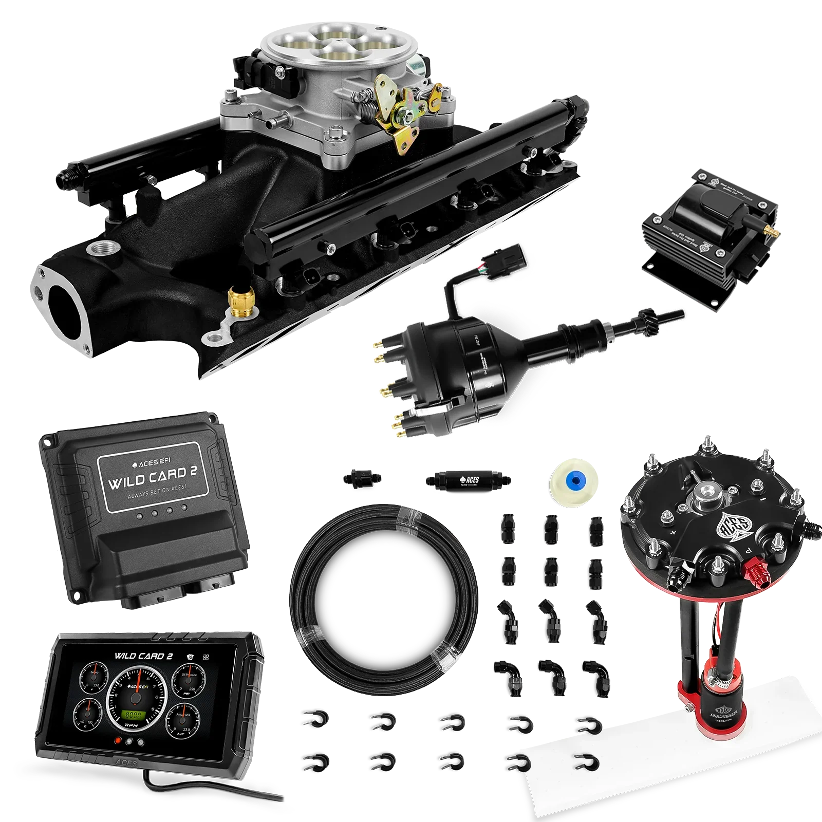 The Aces Wild Card 2 is a fully customizable, true Sequential Multi-Port EFI (MPEFI) system engineered for classic 8-cylinder engines. Unlike traditional TBI setups or aftermarket systems that use bank-to-bank injection, the Wild Card 2 delivers precise fuel metering to each cylinder, giving you superior throttle response, balanced fuel distribution, and more power across the RPM range.