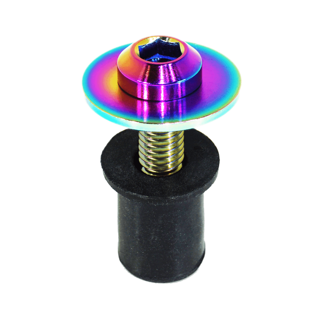 3) Install ZSPEC titanium fastener with washer into each well nut and snug (well nut will bulge on backside to "hold" plastic in place.