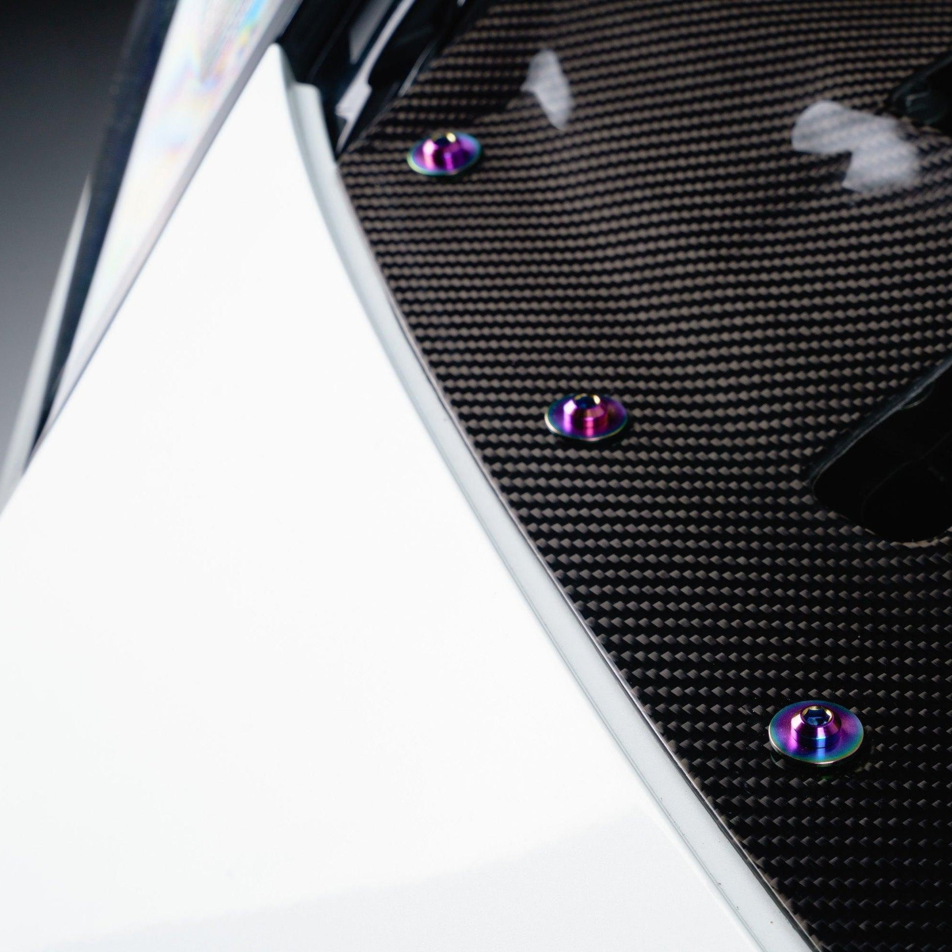 The Factory Plastic Clips break easily and are often chipped up or missing over time. Upgrade your Z1 RZ34 Carbon-Fiber Air-Guide with ZSPEC's lightweight GR5 Titanium hardware solution leveraging rubber well nuts.