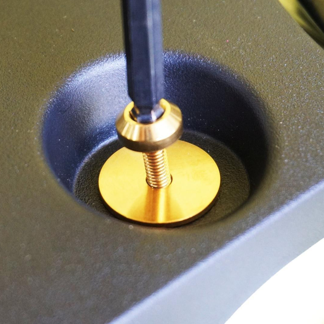 3) Install ZSPEC titanium fastener with washer into each well nut and snug (well nut will bulge on backside to "hold" plastic in place.