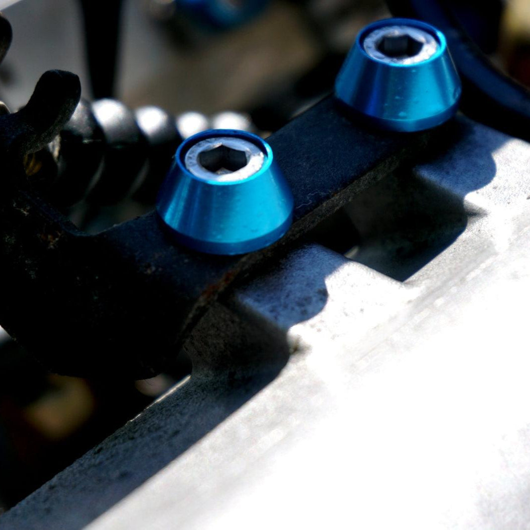 The kit consists of top-quality stainless steel fasteners and billet-aluminum colored finish/beauty washers.